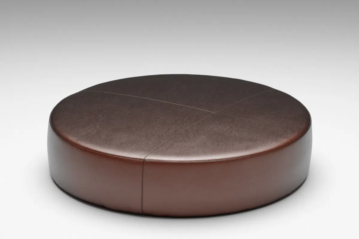 With its flat and supportive structure, the Puck Ottoman is versatile enough that it can very easily double up as an ultra-glam coffee table. Place a gorgeous tray on it for added interest and convenience. Precision workmanship can be identified through the detailed T-patterned cross-stitching. A solid birch frame with inset thermal plastic feet supports high resilient polyurethane foam. Puck Ottoman is available in both Fabric or Leather upholstery.