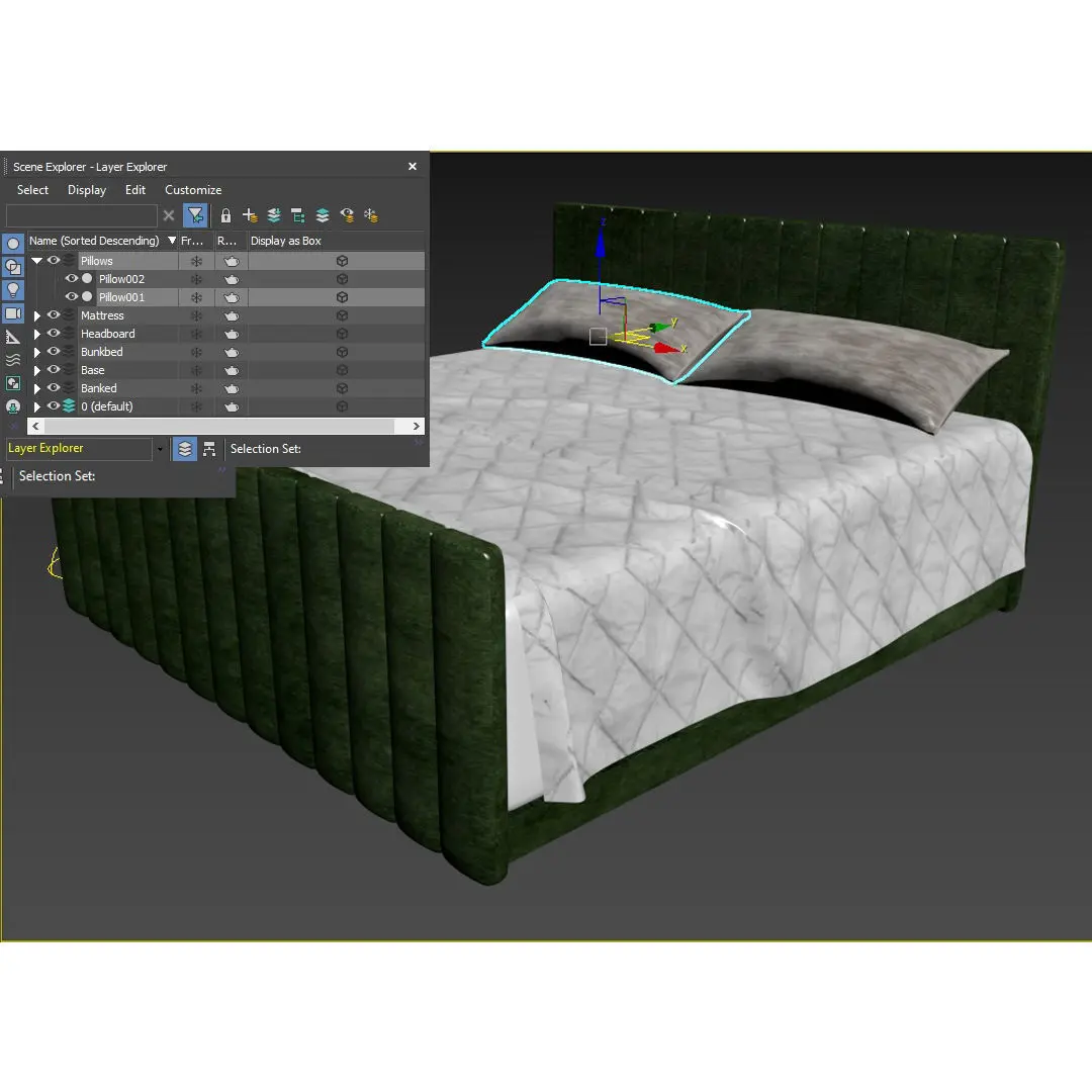 This model is inspired by a design of a modern queen bed, with quilted upholstery on the front panel and on the headrest, with diamond bed padding, a focal point that elevates your bedscape, it takes on a clean-lined silhouette.*each layer of the model is separated, organized, and named*Materials made in Vray organized and with your name