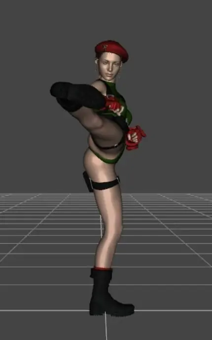 The 3D design of Cammy, the iconic female character from Street Fighter, showcases her fierce and agile persona. Rendered with intricate detail, Cammy is depicted in her signature attire, wearing a green leotard with military-inspired accents. The 3D design captures the essence of Cammy as a powerful and relentless fighter, ready to take on any challenge in the ring.