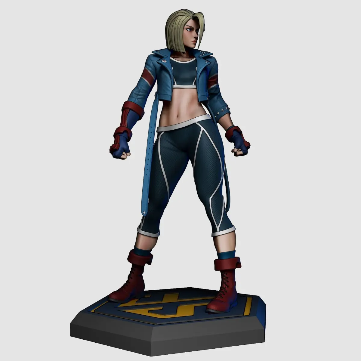 This is a 3d printable statue portraying Cammy with her new Street Fighter 6 looks.