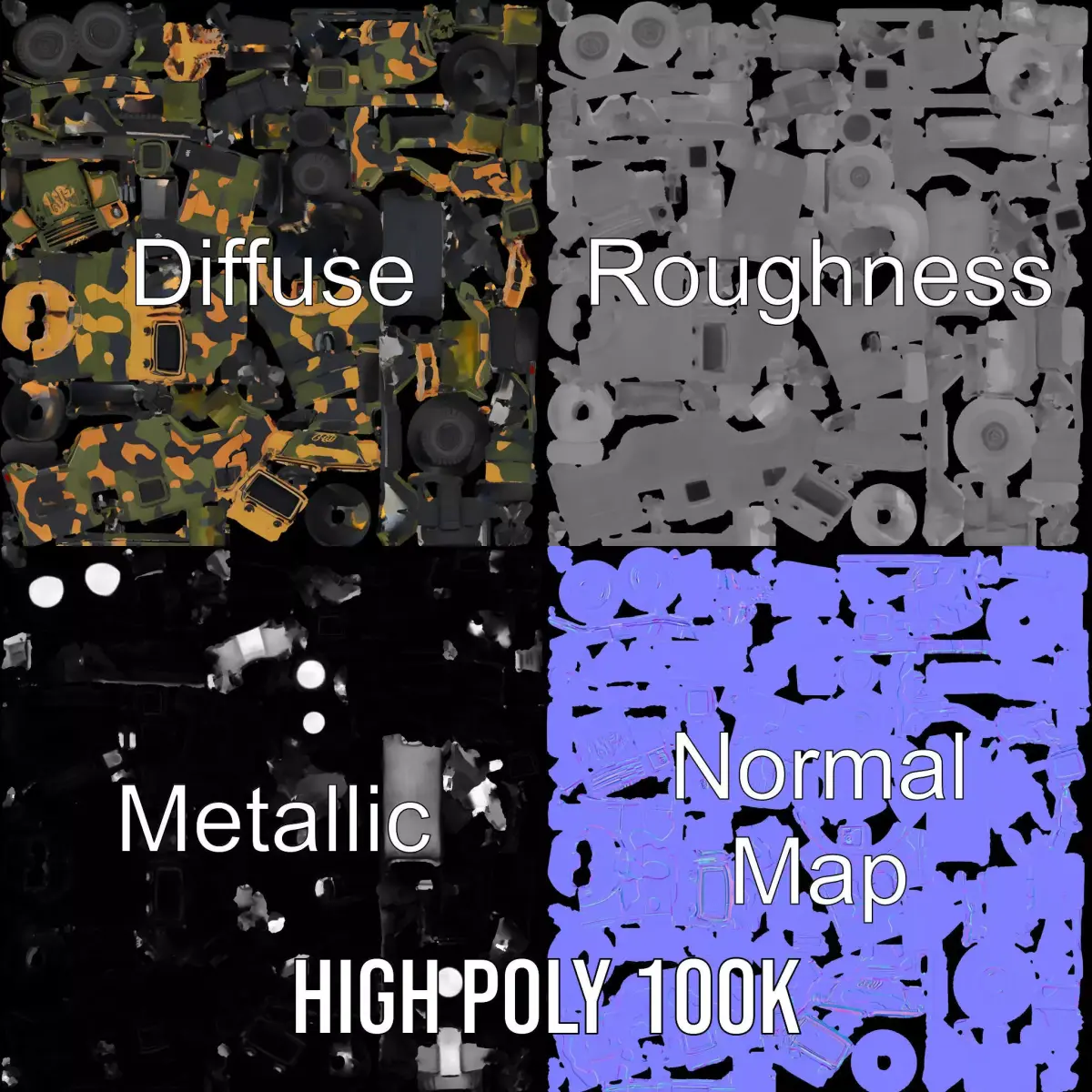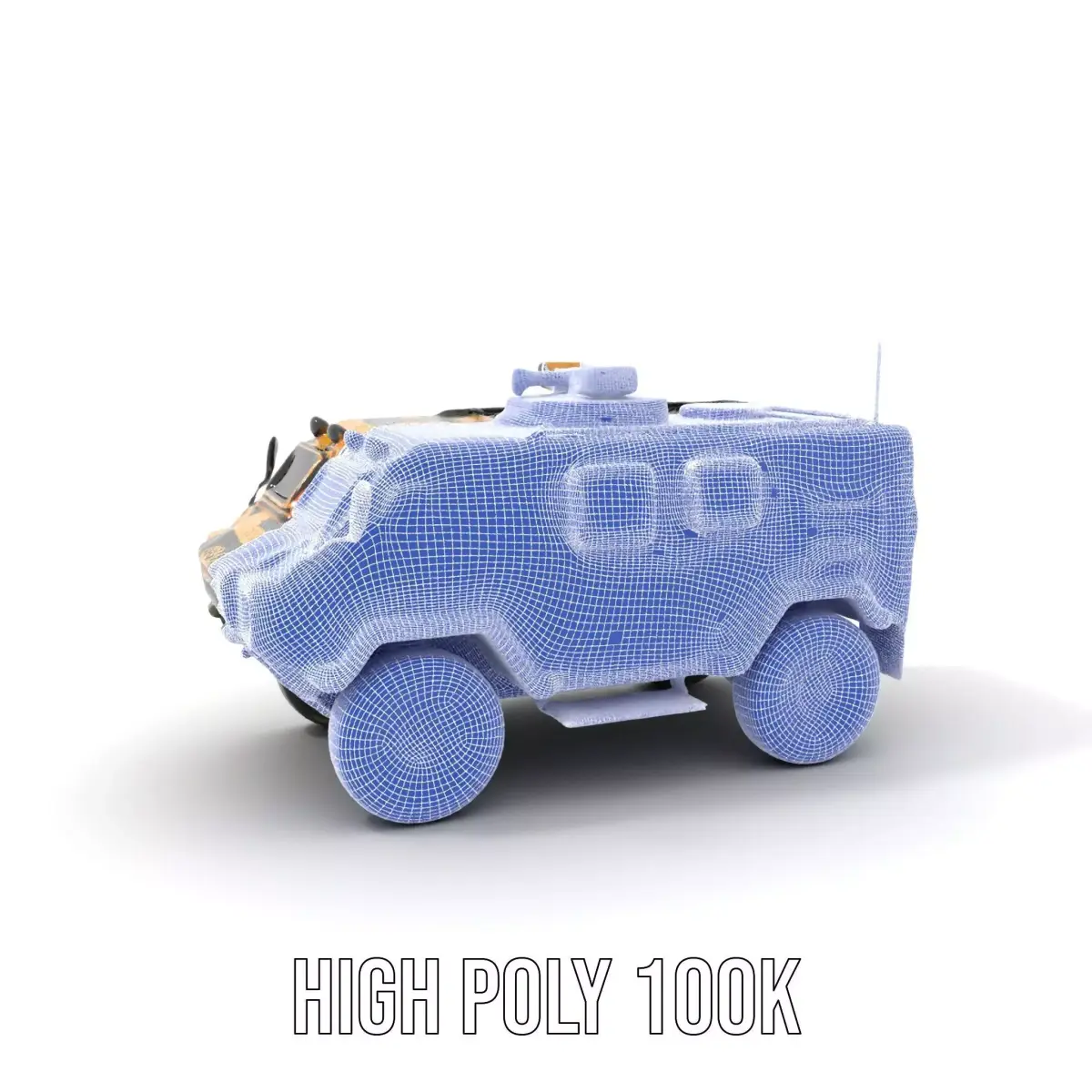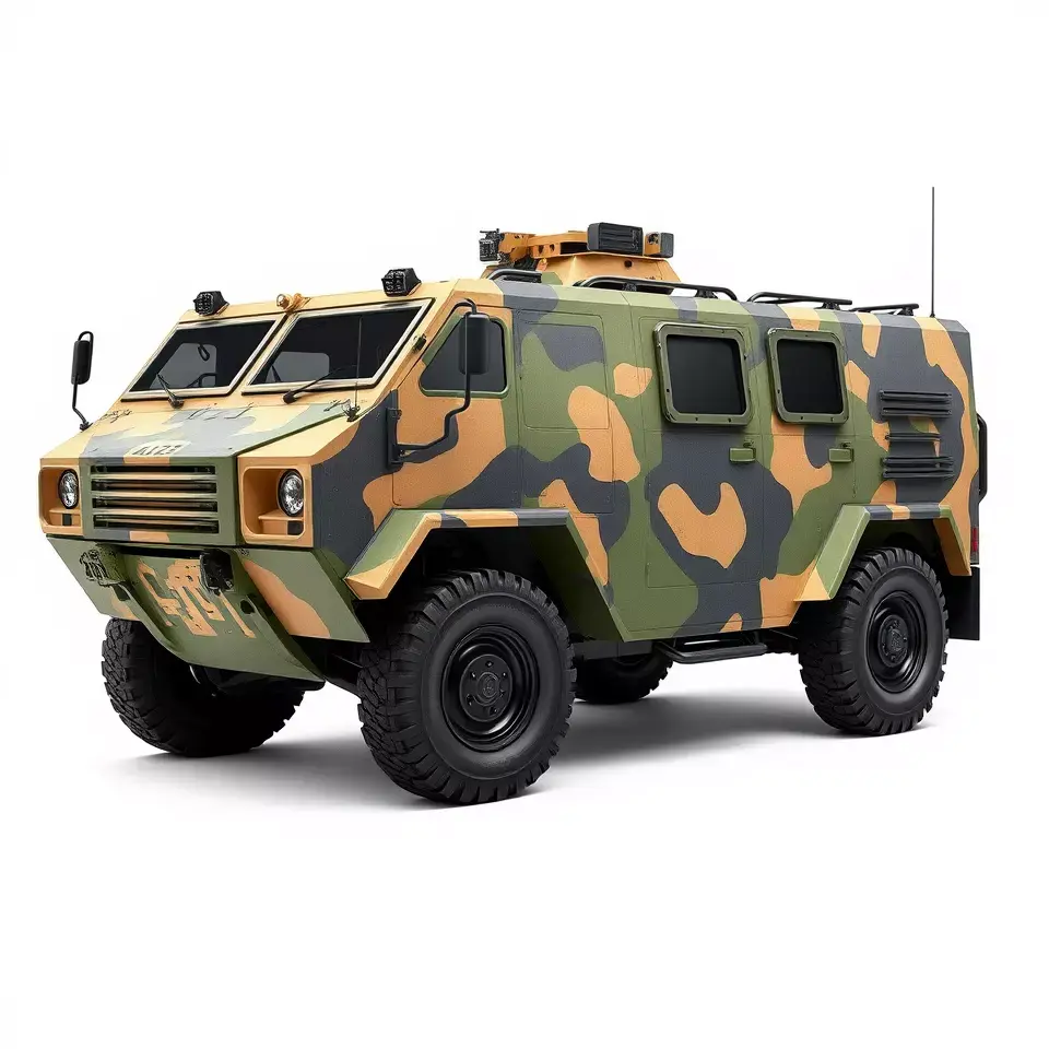 This 3D model represents a robust camo armored vehicle, perfect for military and adventure scenarios. Each model has 3 levels of detail: low-poly (1000 triangles for mobile), middle-poly (10,000 triangles for environment), and high-poly (100,000 triangles), which allows for the use of this model in production rendering (such as 3ds Max, Maya, Cinema4D, Blender, V-Ray/Corona/Cycles and all others), game engines (Unity and Unreal compatible), and interactive presentations, providing a choice of detail based on the LOD system principle. The model's textures are PBR, Diffuse, NormalMap, and reflection/roughness/metallic, which are suitable for any modern rendering engine. All models accurately unwrapped and have no overlapping UV. Ideal for use in simulation games, virtual reality experiences, or realistic animations involving military operations. All textures are 4096*4096 in size. Please like and leave a comment if you enjoyed the model.