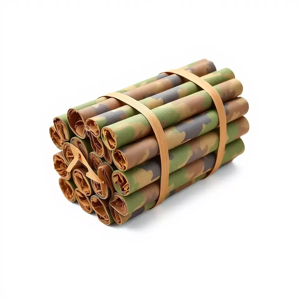 This 3D model pack features a bundle of camouflage fabric rolls, perfect for military and outdoor-themed scenes. The realistic textures capture the essence of durable, camo-patterned materials.
