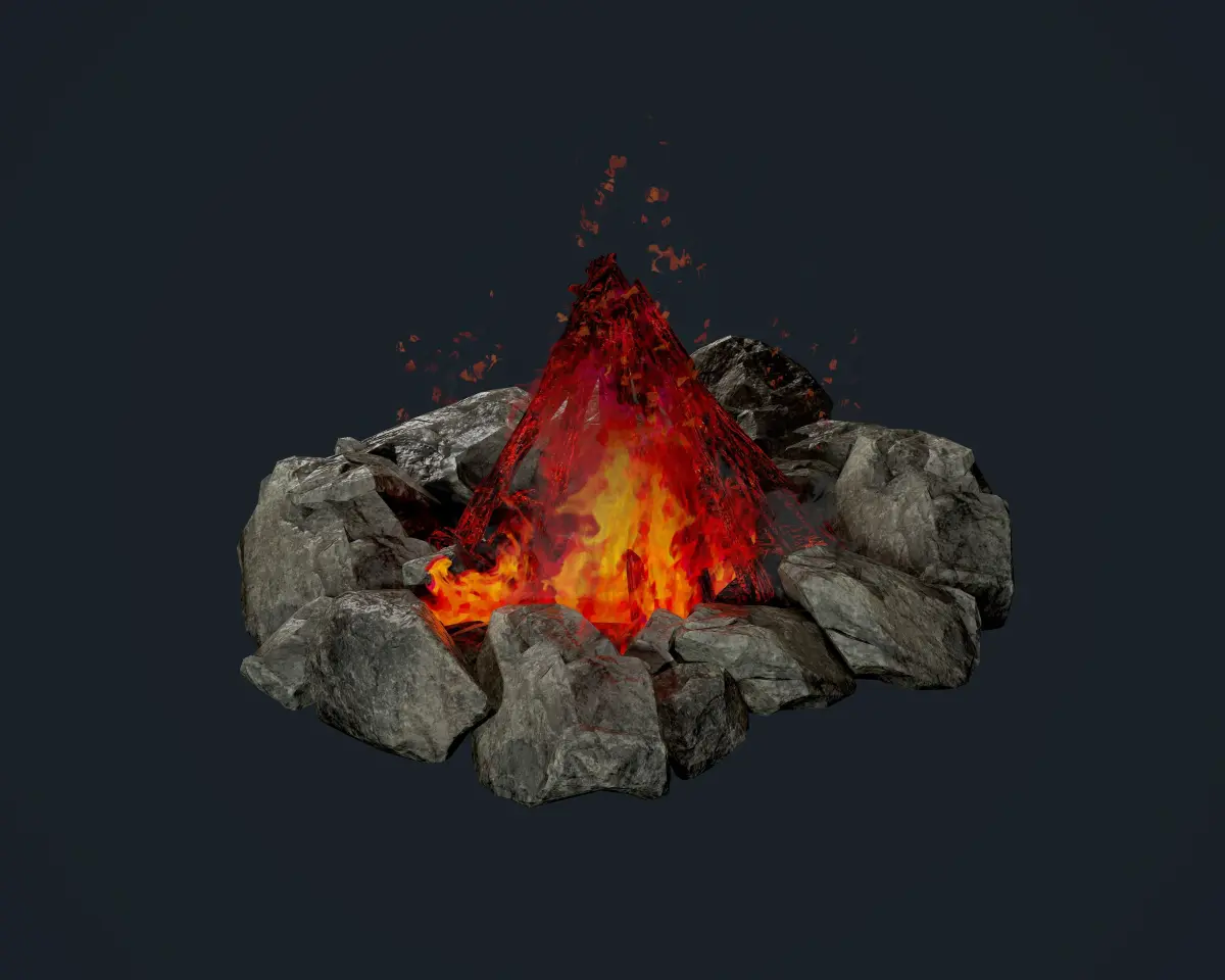 Low poly models of a camp fire pit, unwrapped with PBR textures. OBJ files and FBX files. Rocks, sticks, fire, smoke and embers can be re-arranged to create infinate number of options. Ready for use in any 3D software or game engine.