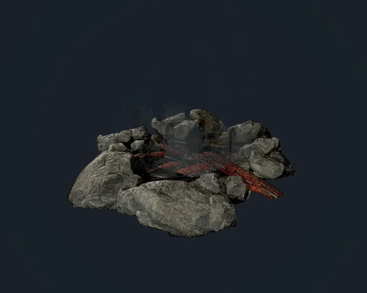 Low poly models of a camp fire pit, unwrapped with PBR textures. OBJ files and FBX files. Rocks, sticks and smoke can be re-arranged to create infinate number of options. Ready for use in any 3D software or game engine.
