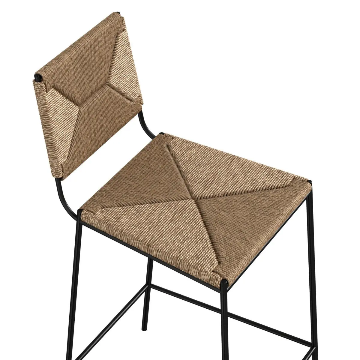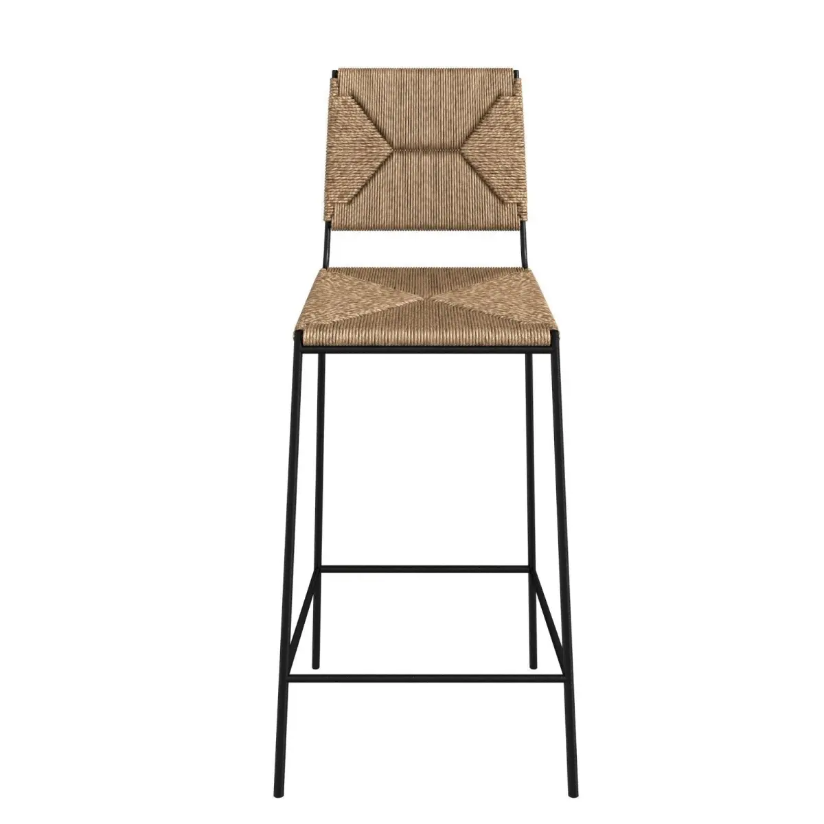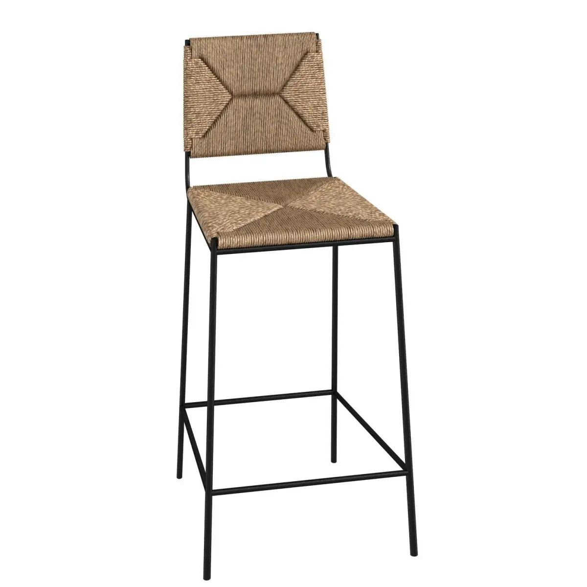counter height stools by Design Frères. Chic combination of slender but sturdy and stable powder coated steel frames with handwoven rush seats and backs. Extra support under the rush seat for durability. Durable plastic caps on the feet to prevent scratching floor surfaces. Additional measurements: 26 in. seat height (can be adjusted to 25 in. or 24 in. if needed). The footrest bar is a standard 7 in. from the floor.15 in. wide x 21 in. deep x 37 in. tall