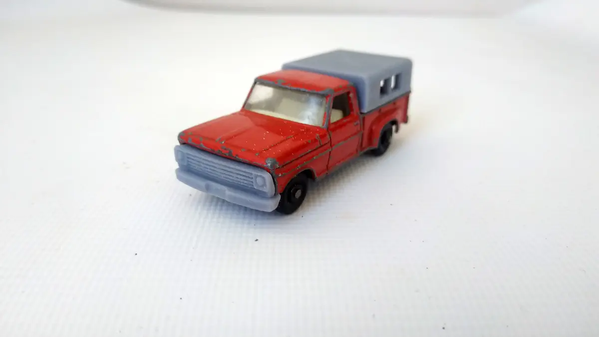 Created missing car parts - 1968 Camper shell and Grille PickUp Series 6 Red Truck.