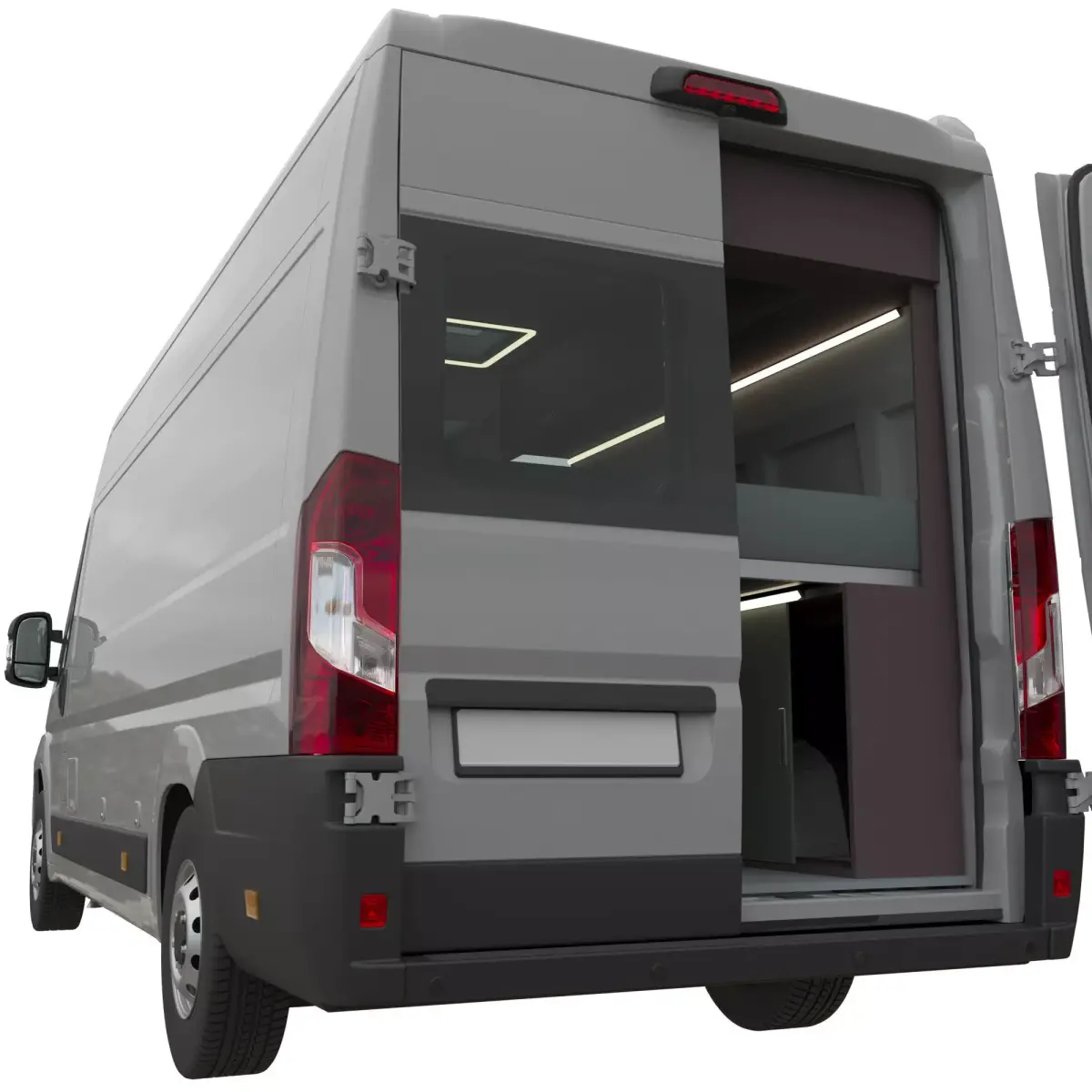 This preliminary design for a Global L4H2 van conversion will be useful for both amateur and professional motorhome builders using commercial vans.For ease of use, each object has a name similar to the material used. All objects for converting the van's cargo compartment have the additional designation interior in their names. This allows for quick separation of these objects for editing. Each object consists of sub-objects, which can be separated into separate objects if your 3D editor supports this feature.All materials are simple and do not require textures. You can change materials and apply texturing if necessary. This is done for ease of export and editing. This project is preliminary, so all dimensions require clarification and measurements on the actual van, so please keep this in mind.L4H2. Detailed model of the Global commercial van. The model has no logos or nameplates. In terms of dimensions and features, this model matches the following vans (produced since 2014): FIAT Ducato, Peugeot Boxer, Citroen Jamper, RAM ProMaster, Opel Movano, Vauxhall Movano, and Toyota Proace Max.All these models are technically identical. Externally, they differ in the design of the decorative radiator grille and front bumper elements. There are also minor differences in the design of some interior elements of the driver's cabin. There are several standard van sizes, varying in length and height: L1H1, L1H2, L2H1, L2H2, L3H2, L4H2, L3H3, and L4H3. The 3D model matches the dimensions of the actual vans but is not an accurate CAD engineering model. This should be taken into account if you work in industrial design. This model is suitable for sketching in 3D graphic editors, visualizing scenes in architectural design, and any other tasks where the absence of logos is desirable. If you're looking for a similar branded model, you can find it among other models in my profile. The van's cargo compartment has a similar set of body panel components.Dimensions van: 6363 mm (length) x 2524 mm (height) x 2050 mm.Polys: 445747 Verts: 481297Model features: Detailed exterior. Detailed interior. Detailed cargo area. Each object has a material name, you can easily change or apply materials. It is easy to separate sub-objects from the object into separate elements. All objects are georeferenced to a point with zero coordinates. In the model are applied simple Materials that do not require textures. The preview is obtained using the Corona renderer and with these materials. Use files with extension (.FBX) to import this model into other graphic editors, if they support importing (.FBX) files.Formats:1) max (2021 + Corona 12),2) fbx (2013 Corona),3) obj,4) blend 3.6 (materials require customization)Render: Corona.Happy renders! See other models on my profile.