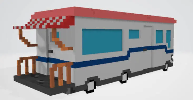 Voxel model of camper, with obj, vox, mtl and png (texture) files.