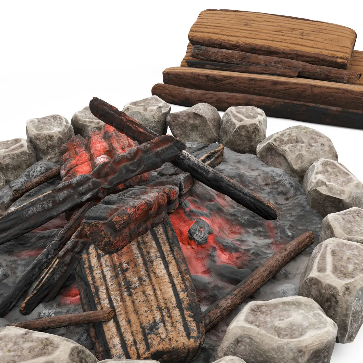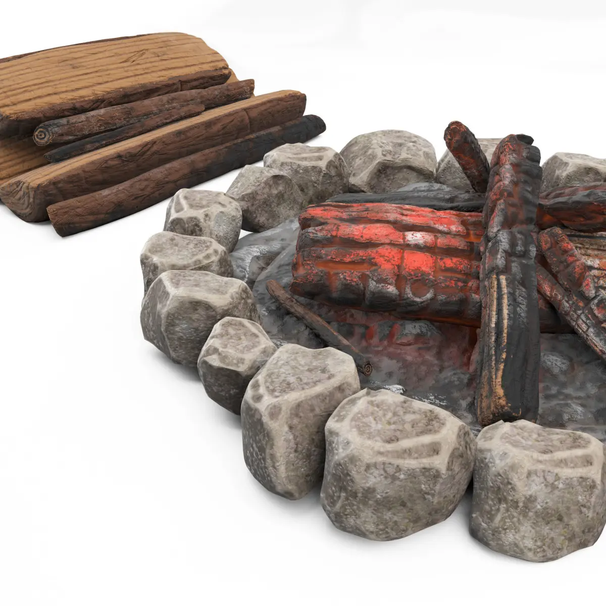3d models of Cartoon campfire with wood stack.