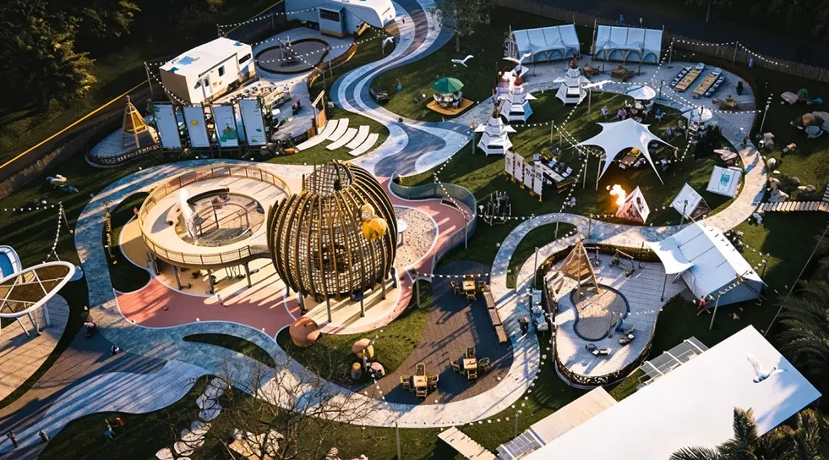 Glamping ParkTablesAndChairsCamping ParkLargeSphericalClimbingFrameCampgroundMobileHomesGlampingTents