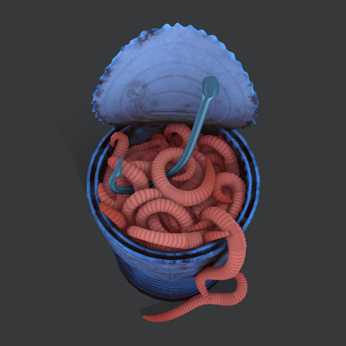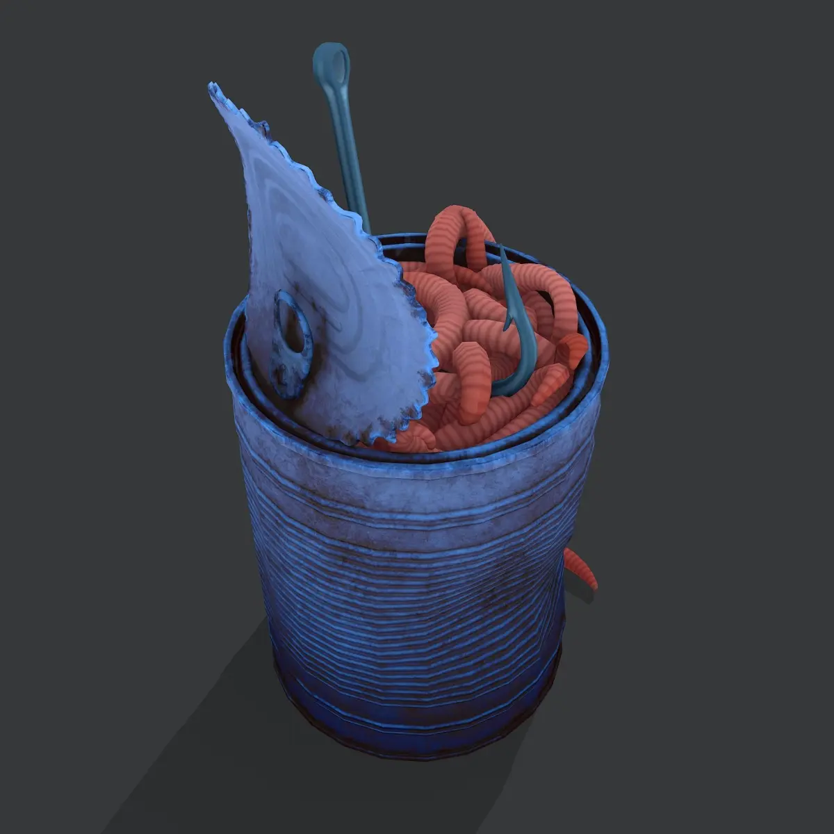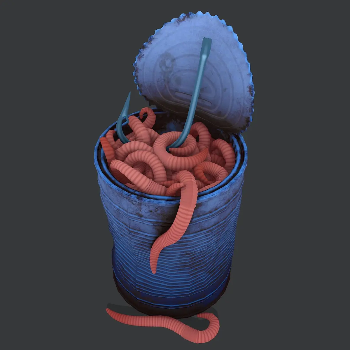 Can of worms with fishing hook prop Low-poly 3D model
