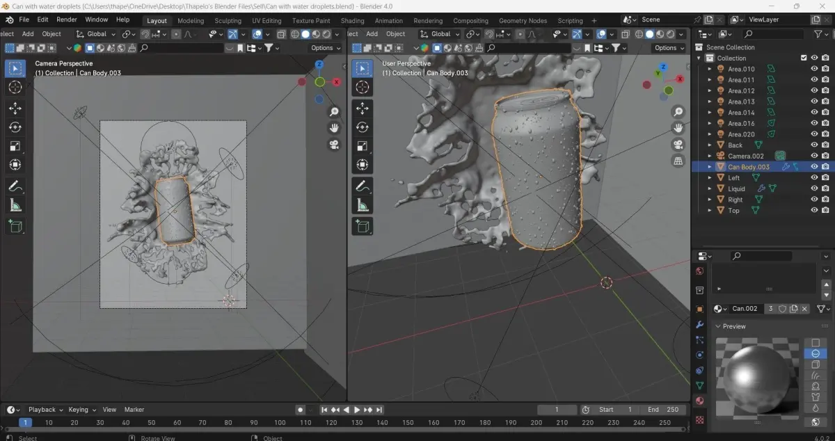 This is a can with adjustable waterdroplets and liquid splash template for you to input your can logo, this also comes with a camera shot scene which you can use to create posters and more. This works with Blender 3.7; 4.0 and later. I love to help the community so please leave a comment if you encounter issues so that i can fix it straight away. Appreciate it if i got a like.