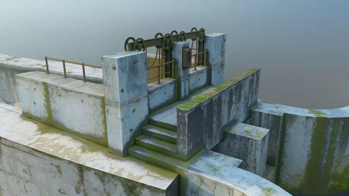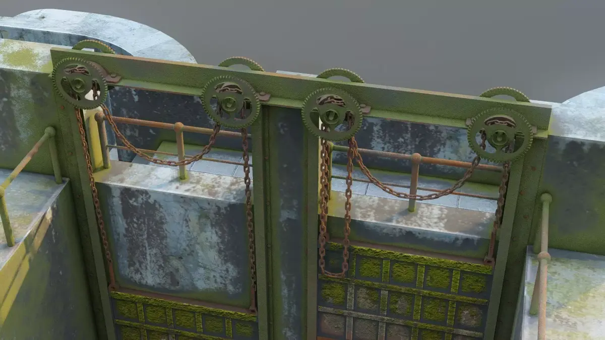 This is a high-quality 3D model of a canal water gate designed with realistic details, perfect for architectural visualization, environment design, and game development. The model is carefully created in SketchUp and then imported into Blender with applied PBR textures for a realistic look.