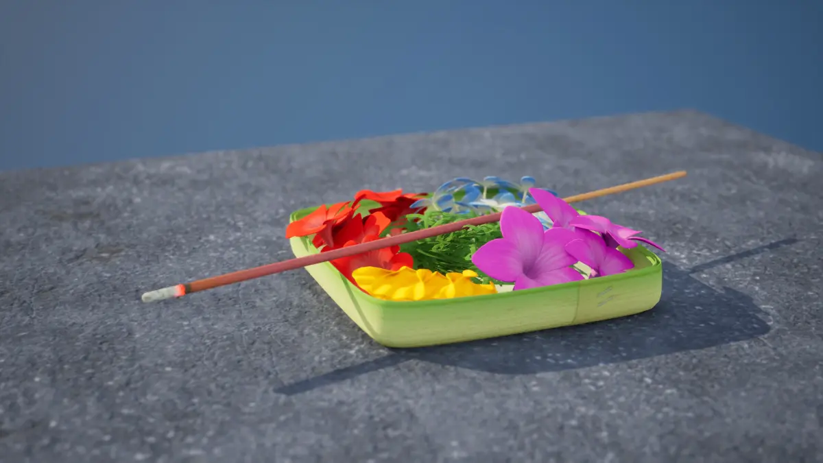 "A beautifully detailed Canang Sari, the daily flower offering used in Balinese Hindu rituals. Adds a sacred and spiritual essence to temple or home altars.
