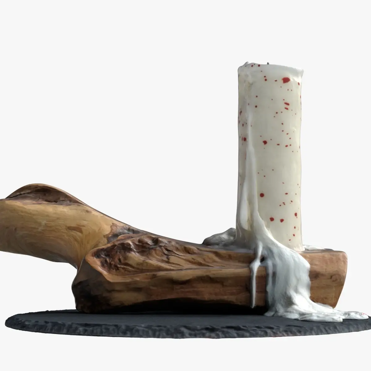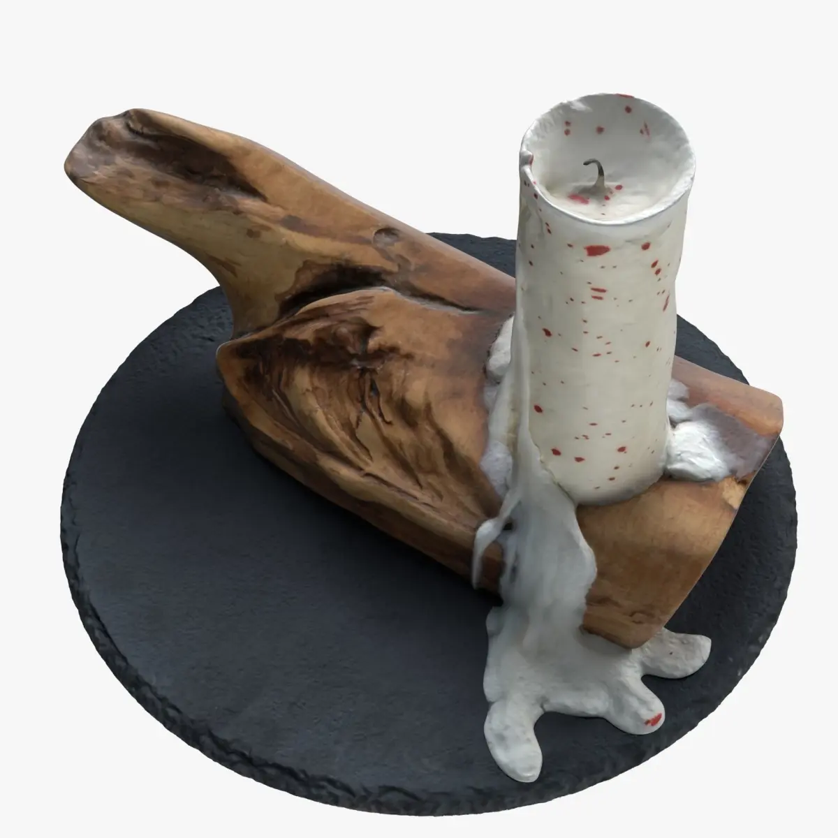 Highly detailed, photorealistic, 3d scanned model of ‘Candle and wooden holder’