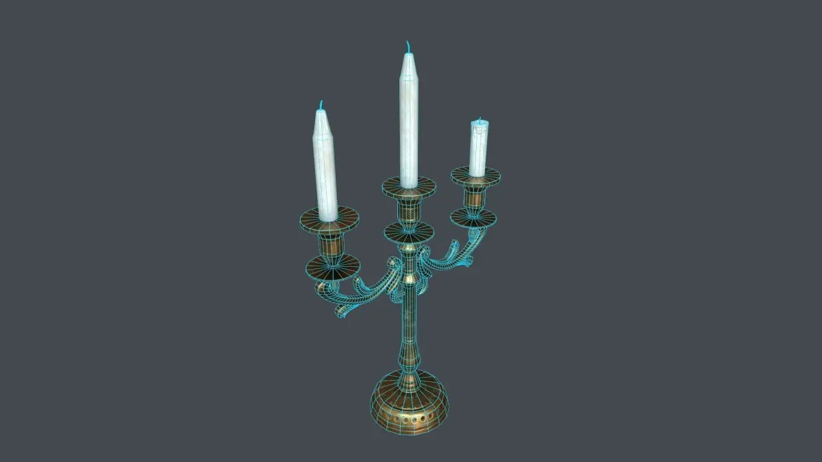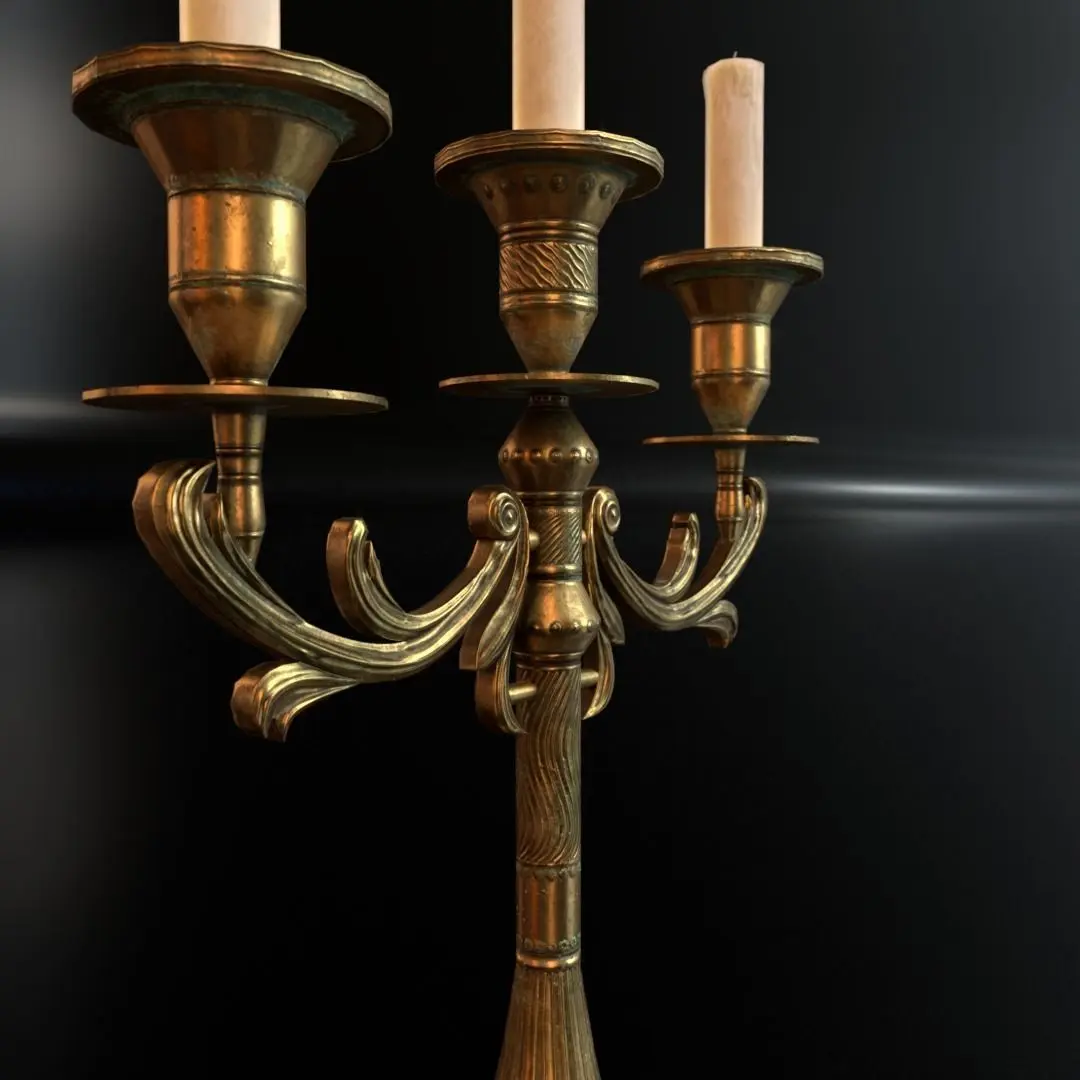 This package contains a high quality, game ready vintage, partly corroded bronze candle holder and 3 different candles that can be used in any realtime renderer that supports the physically based rendering pipeline aka PBR, using the metallic workflow. (If you are unsure what this means, texturing of this model is probably not compatible with your target renderer. Traditional specular/gloss maps are not included!)