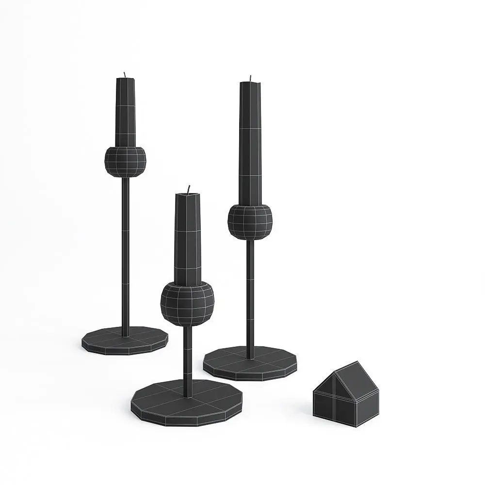 Candle holder designed by West Elm in three sizes, the miniature concrete house is included as a little extra. Optimized topology, uv unwrapped and highly detailed, ready to enhance your interior renders, with materials for c4d corona, obj, fbx and texture maps.