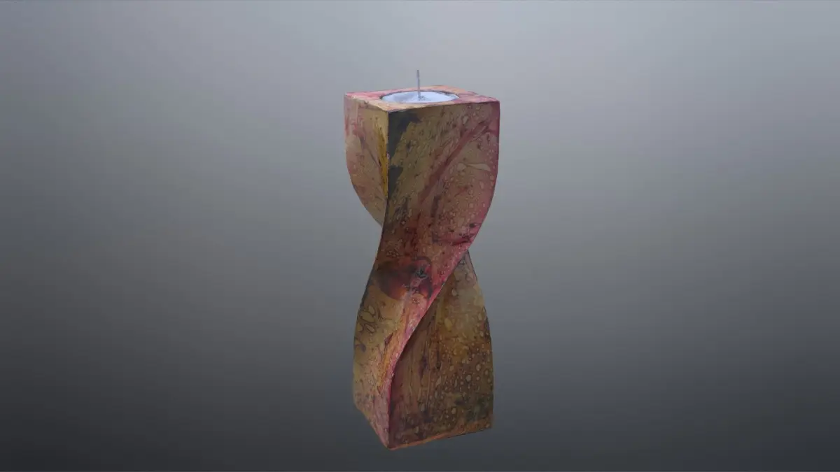 This is a scanned mode of a beautiful, sculpted candle in a spiraled pattern with a lot of beautiful detail. It has good Topology and is a watertight mesh with 2769 polygons at 99% quads and no Ngons. Its vert count is 2769 as well.