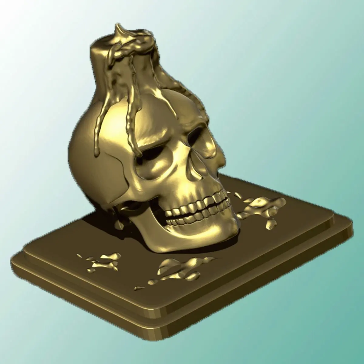 These 3d files have been modeled from skull images , during the process of modelling , we use different angle reference images and you can see the model from different angles in preview . It's a great model for 3d print . software : Zbrush format : there are 4 seperate parts of the model (skull , candle , surface , drops) each one provided in STL , OBJ , ZPR , MTL polygon : skull = 100 k candle = 50 ksurface = 15 k drops = 10khope you enjoy it!