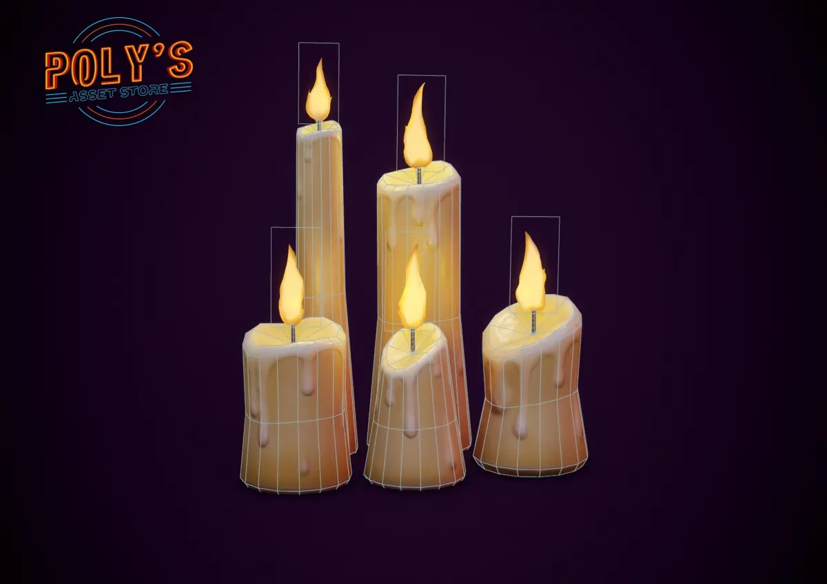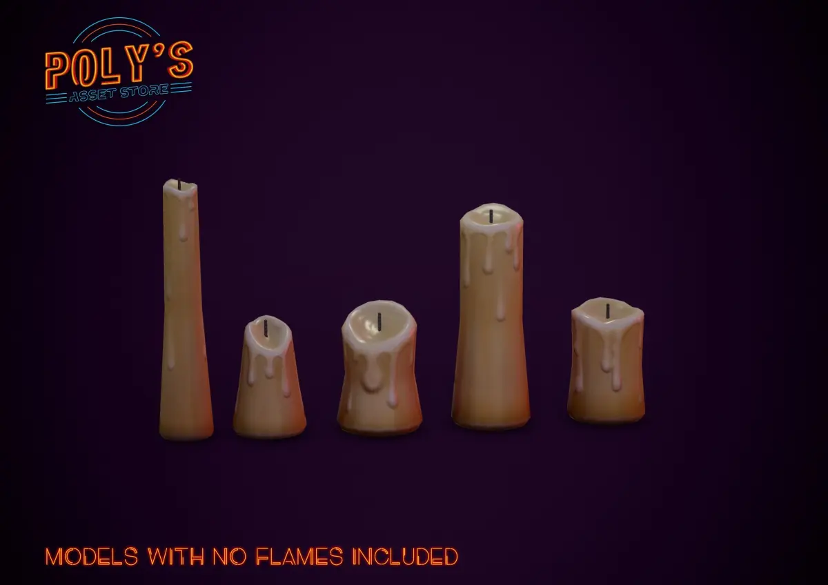 - This is a Low Poly Stylized pack of 5 candles. Models with and without the flame included.