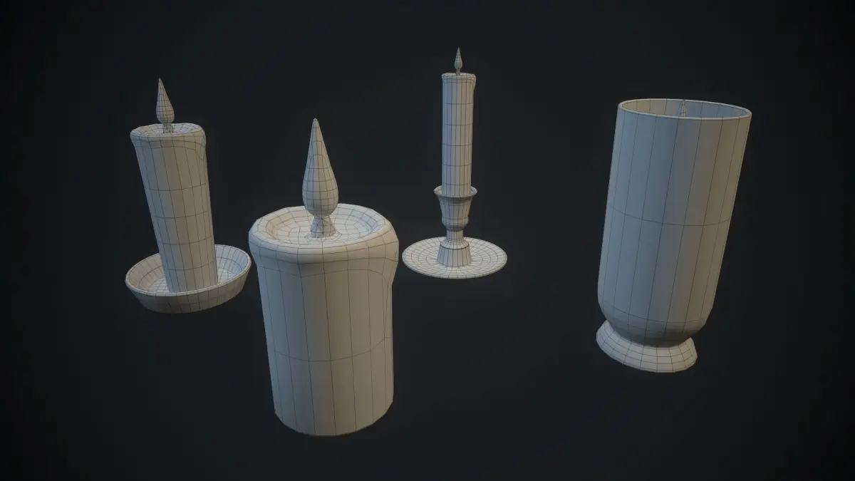 lowpoly game ready set of a candles with unwrapped UVs and PBR textures included.