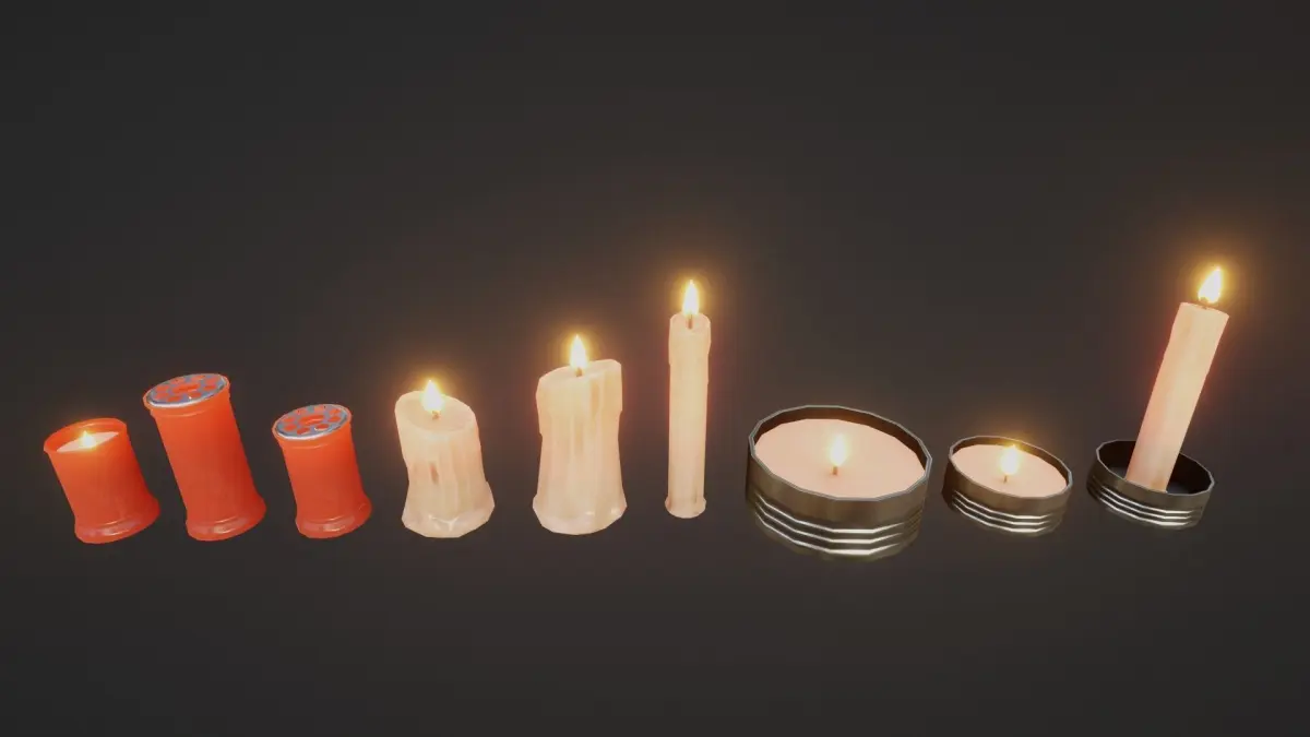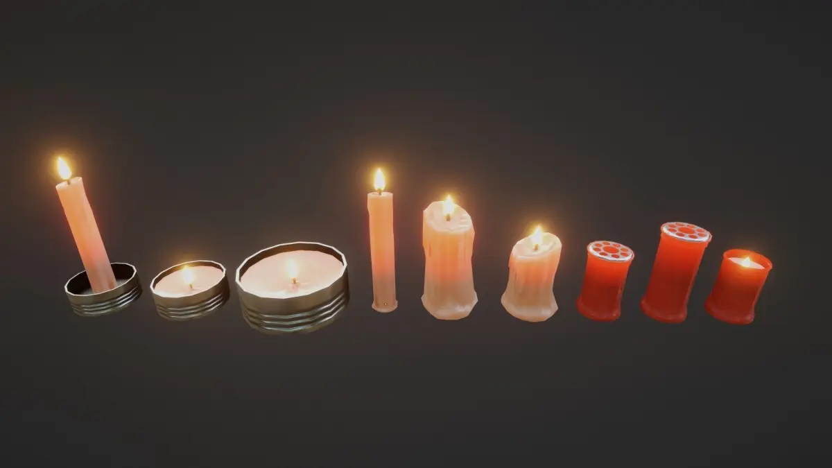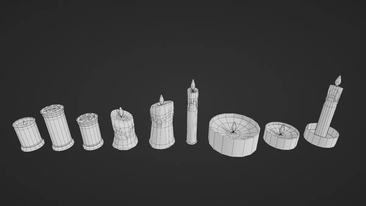 Set of 9 low-poly realistic candles designed for videogames and realtime applications.