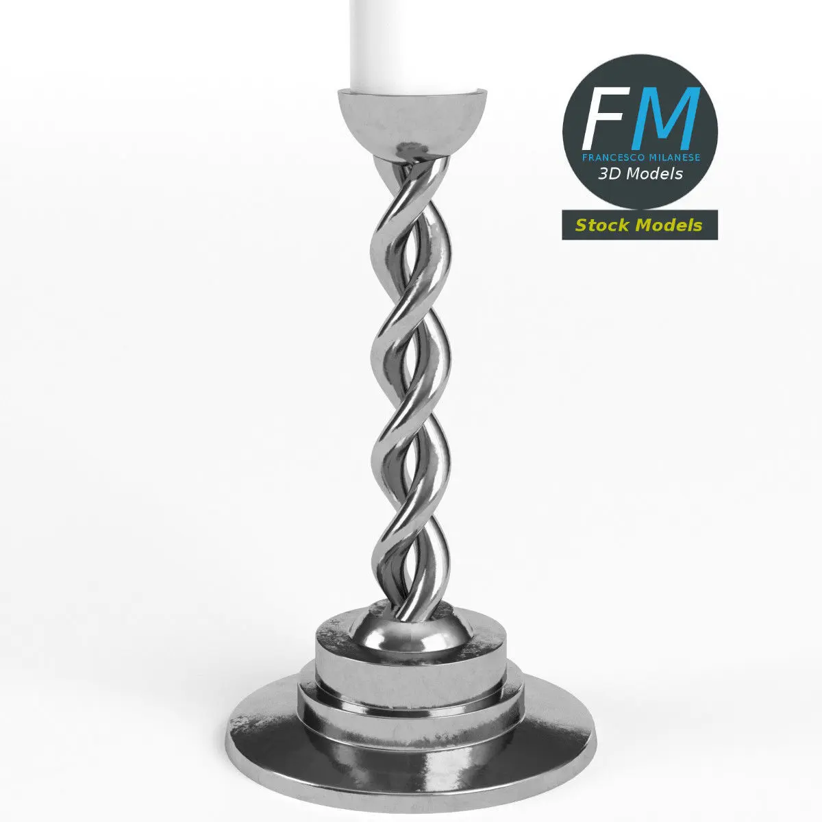 Candle with holder 3D Model. Production-ready 3D Model, with PBR materials, textures, non overlapping UV Layout map provided in the package.