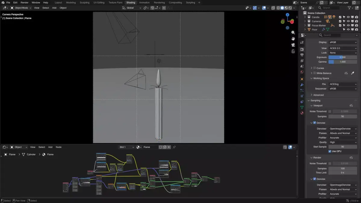 The candle flame material is procedural and a light animation on the flame.