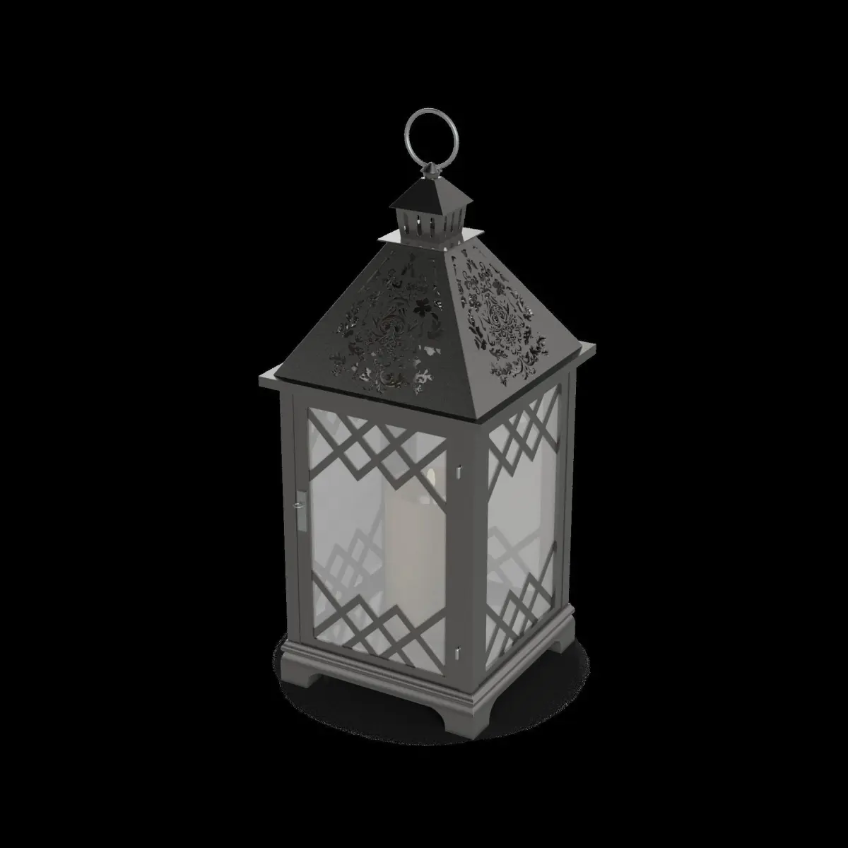 Candle Lantern: Add a touch of charm to your outdoor space with this candle lantern. The lantern is made from durable metal and features intricate cut-out patterns, allowing the candlelight to create beautiful shadows. The lantern has a hinged door for easy access to the candle and a handle for convenient hanging. Size: 10" tall.