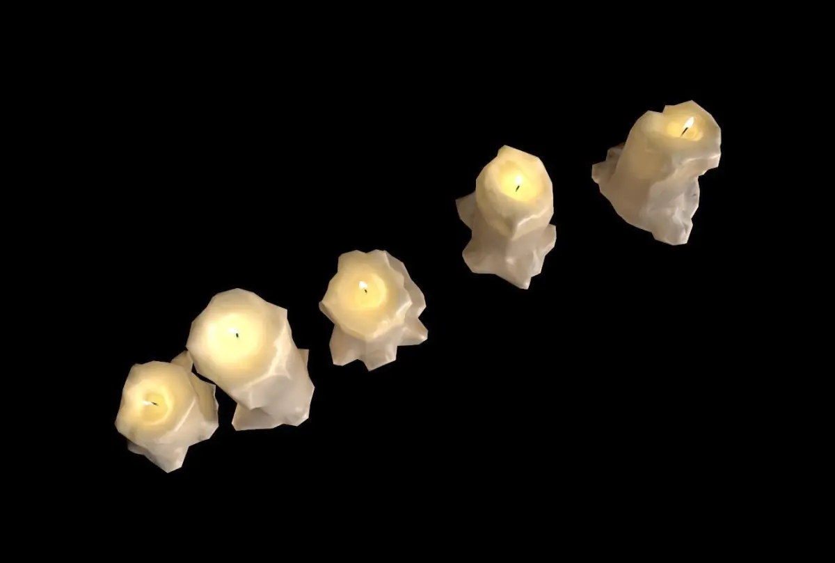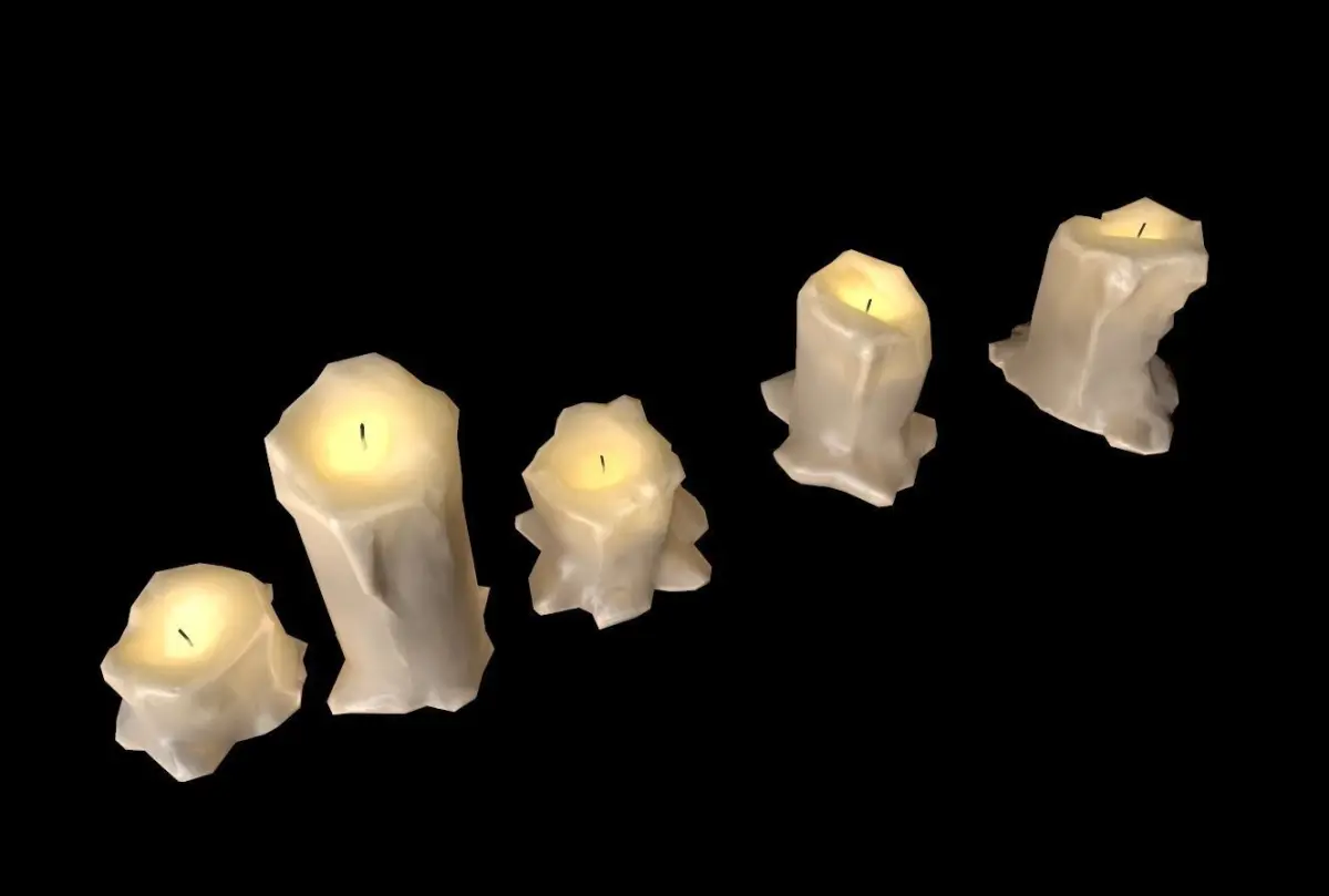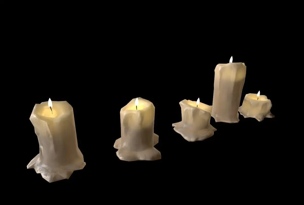 Low poly pack of 5 candles with PBR textures. Candle flame not included. It comes with 1 set of 2048 textures with:AlbedoAONormalMetalnessRoughnessGlossEmission