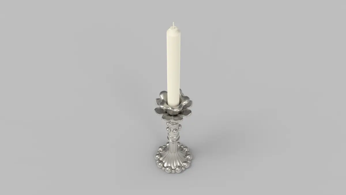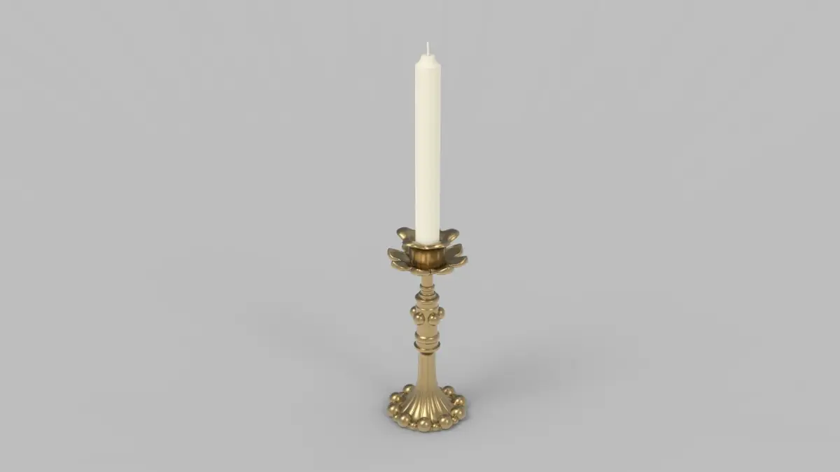3d model of candlestick and candle. 2 color variations. Materials are available in 3D Max. Correctly scaled accurate representation of the original objects, with accurate grid. Objects grouped for easy selection and logically named. No cleaning up is necessary (cameras, lights etc. are not included to the scene). Ready for smooth.