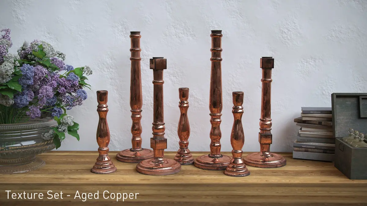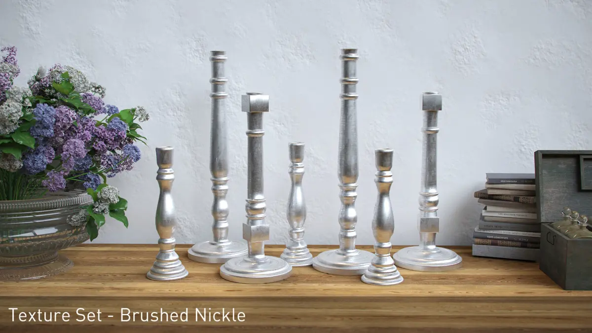 Candlesticks in three different sizes/shapes with 3 texture sets. low-poly 3d models ready for Virtual Reality (VR), Augmented Reality (AR), games and other real-time apps. - Bercon Noise maps needed for procedural brushed metal texture. A zip file of these is included in the download - Candlesticks can be merged into your scene and ready to RENDER! - Model supports VRay Render 3.4 or higher - Purchase includes 3DsMax (2014 or higher) and OBJ files. [ USAGE ] - This model is suitable for use in broadcast, high-res film close-up, advertising, design visualization, forensic presentation, etc. - The model is accurate with the real world size and scale [ GENERAL ] - Model is built to real-world scale - Scene objects are organized in Outliner - No third-party plug-ins used [GEOMETRY] Stick Small - Polygons: 4,212 - Vertices: 4,214 Stick Medium - Polygons: 5,404 - Vertices: 5,482 Stick High - Polygons: 7,524 - Vertices: 7,526 [TEXTURE ] All materials are Vray based. Maps included with each cone: - Diffuse (4K), - Height (4k) - Normal (4k 8-bit) - Reflection / Glossiness (4K) [ ADDITIONAL NOTES ] - OBJs provided for other 3D applications. - Message me if you need FBX of STL versions If you have any questions or concerns, reach out and I'll take care of you as best I can