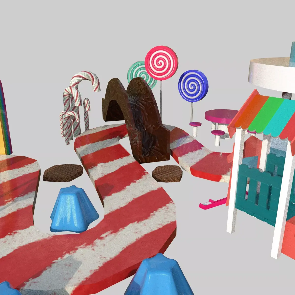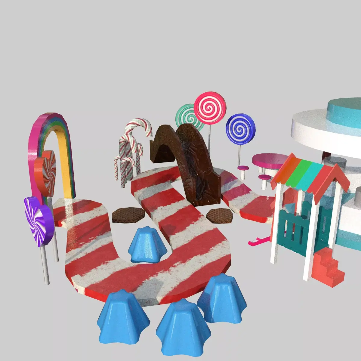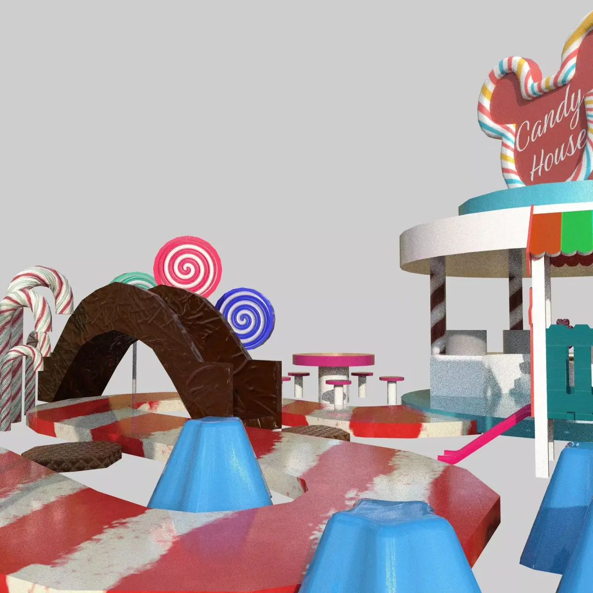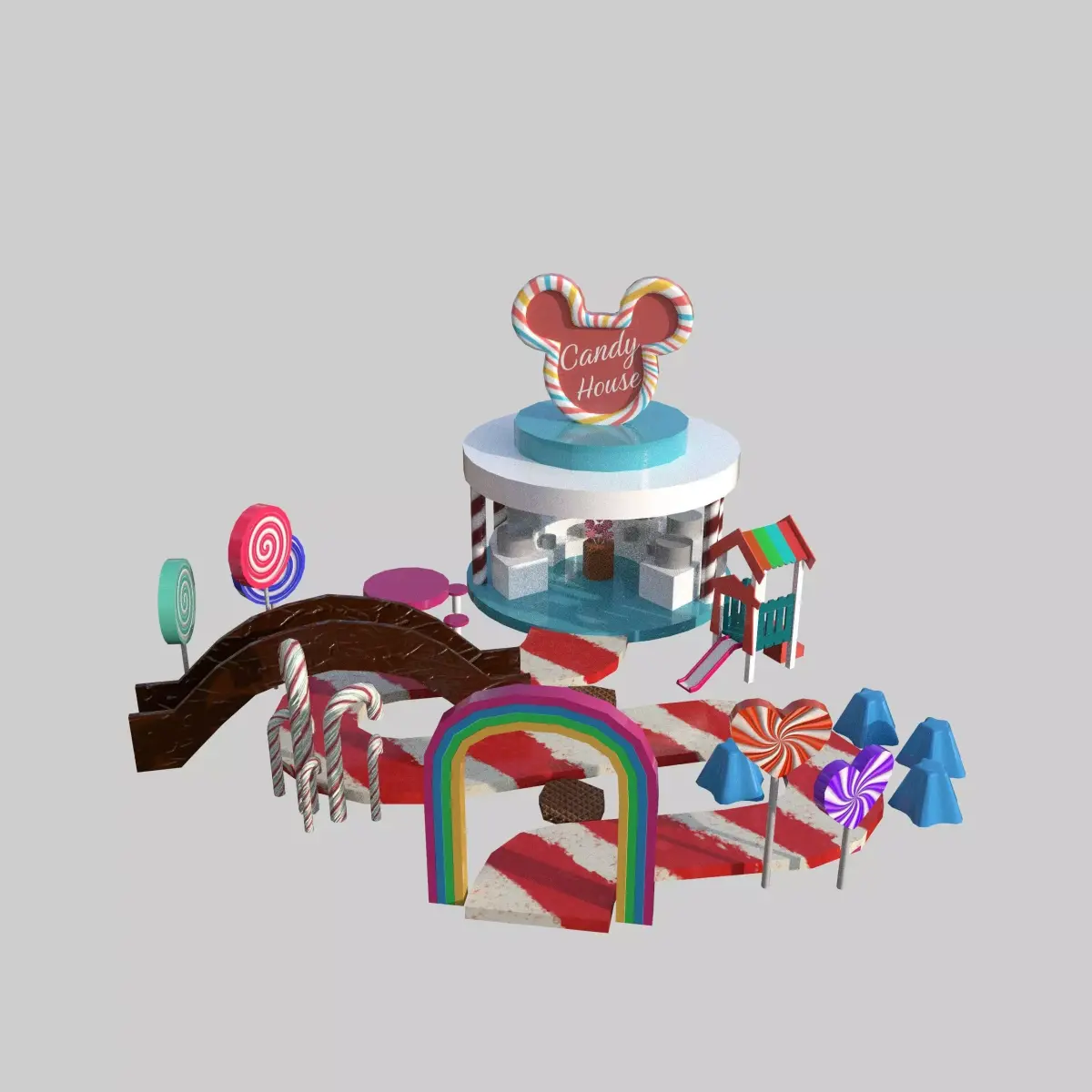 A stylized 3D Candy Stall / Candy House model designed for playful, vibrant environments such as theme parks, carnivals, and fantasy games.