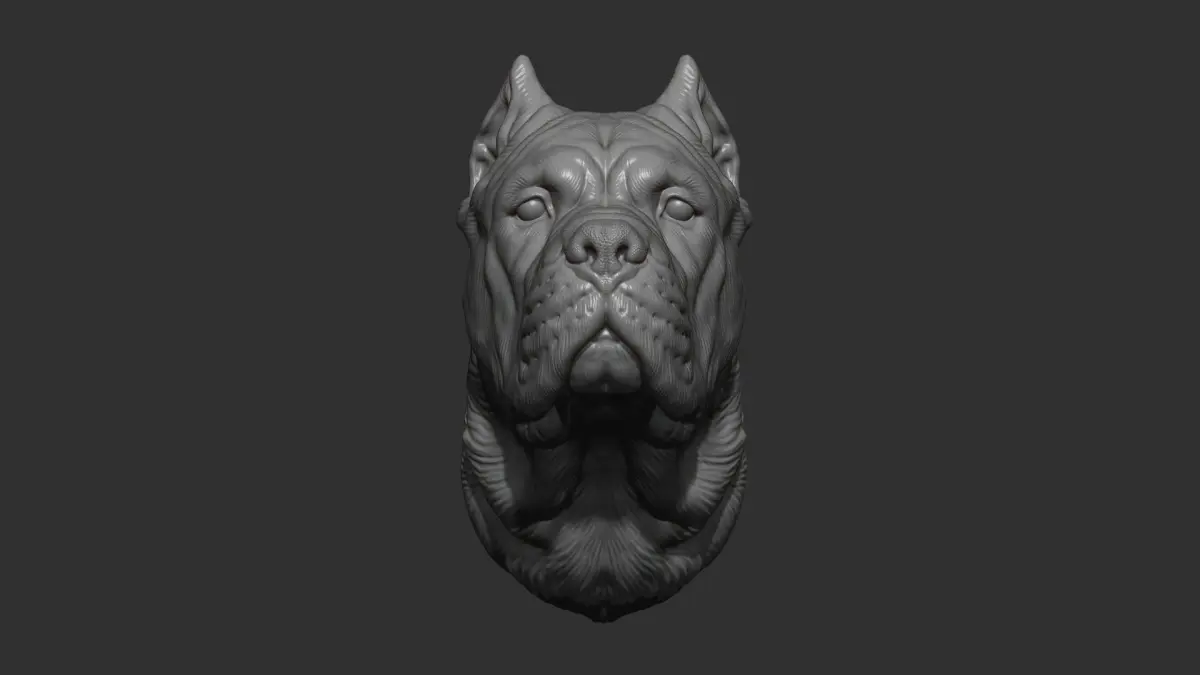 500K STL, OBJ triangulated mesh, Canne Corso dog head is cut off from the bottom