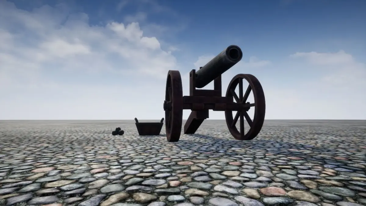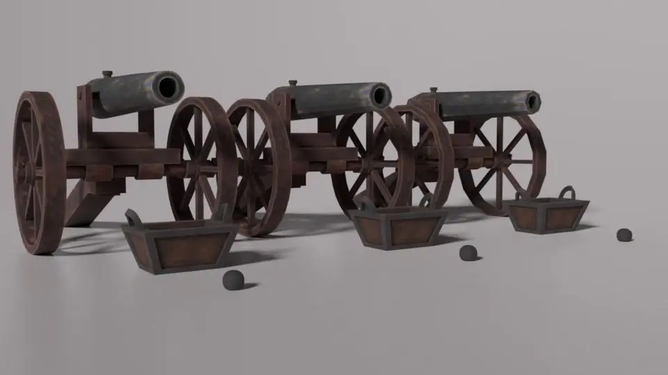Cannon 01 is a 3D model of a cannon that includes the cannon ball box and also the cannon ball.