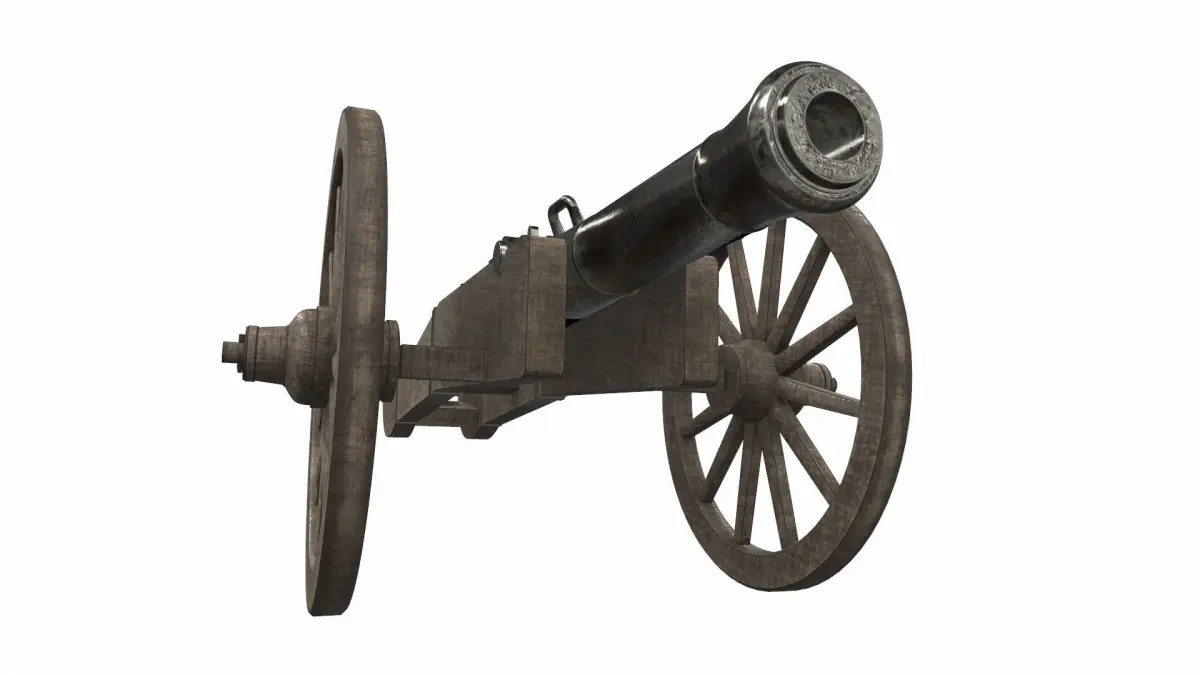 The average length from the end of the barrel to the tail of the gun carriage of the model is 234 cm.The model consists of one mesh.