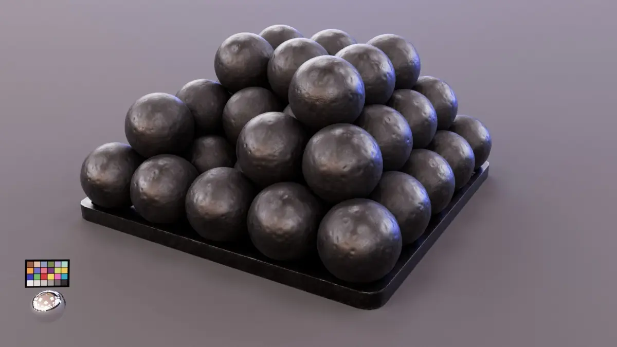 Overview:3D model of a stacked set of iron cannonballs, ideal for historical environments, war-themed games, or educational visualizations. Designed to be lightweight and visually accurate with PBR textures.