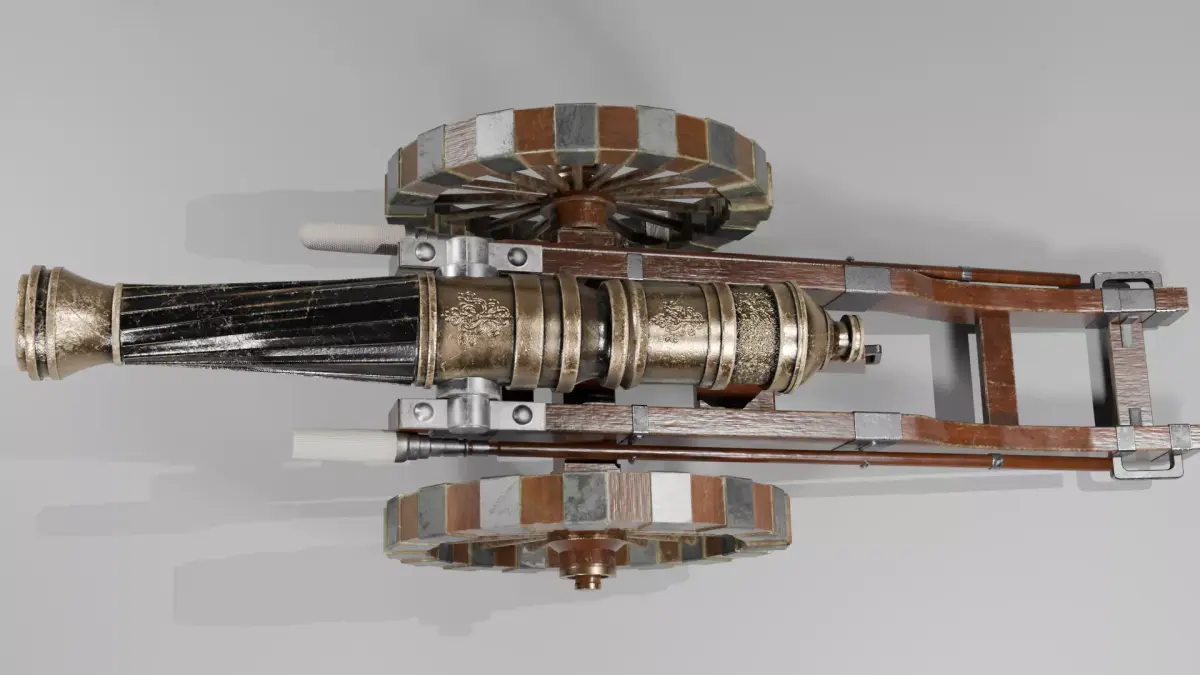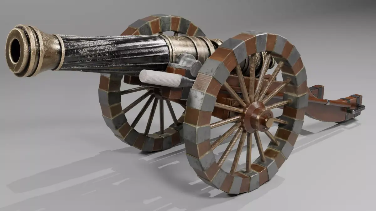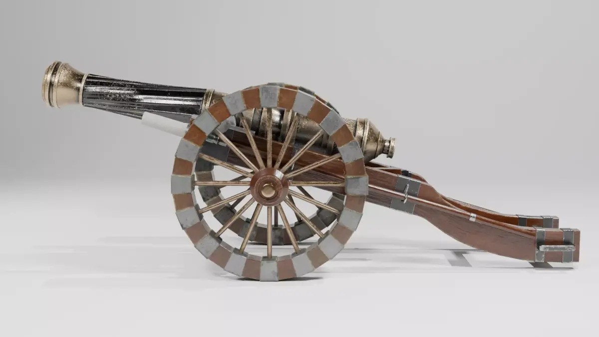 This 3D model showcases a gothic-inspired cannon influenced by the dark fantasy style of games like Dark Souls. The design emphasizes a sense of age and weight, with weathered metal surfaces, corroded edges, and subtle dents that suggest a long history of use in countless battles. The wooden carriage is reinforced with heavy iron bands and bolts, giving the piece a rugged and medieval authenticity.Optimized for both realism and efficiency, this model fits seamlessly into games, cinematics, or concept art. Its blend of historical influence and stylized design makes it a versatile asset for projects aiming to capture the oppressive, heavy tone of dark fantasy worlds.