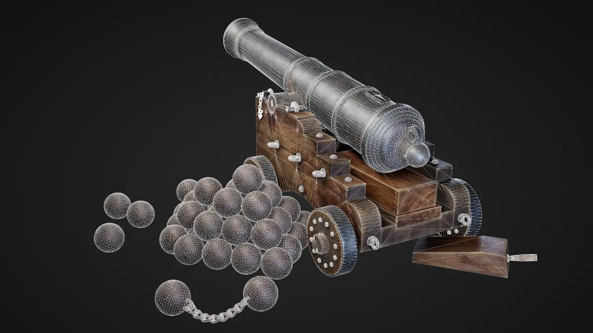 Triangle count:Cannon_01: 61,176Cannon_01_Ball: 1,104Cannon_01_LargePile: 33,120Cannon_01_MediumPile: 15,456Cannon_01_SmallPile: 4,416Cannon_01_ChainBall_Straight: 8,920Cannon_01_Ball_Scattered: 3,312Cannon_01_Linstock: 10,314Cannon_01_Ram: 10,302Cannon_01_Worm: 4,044