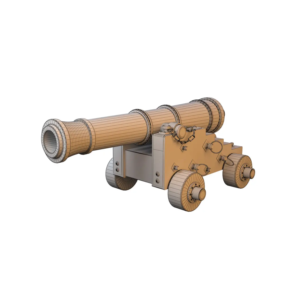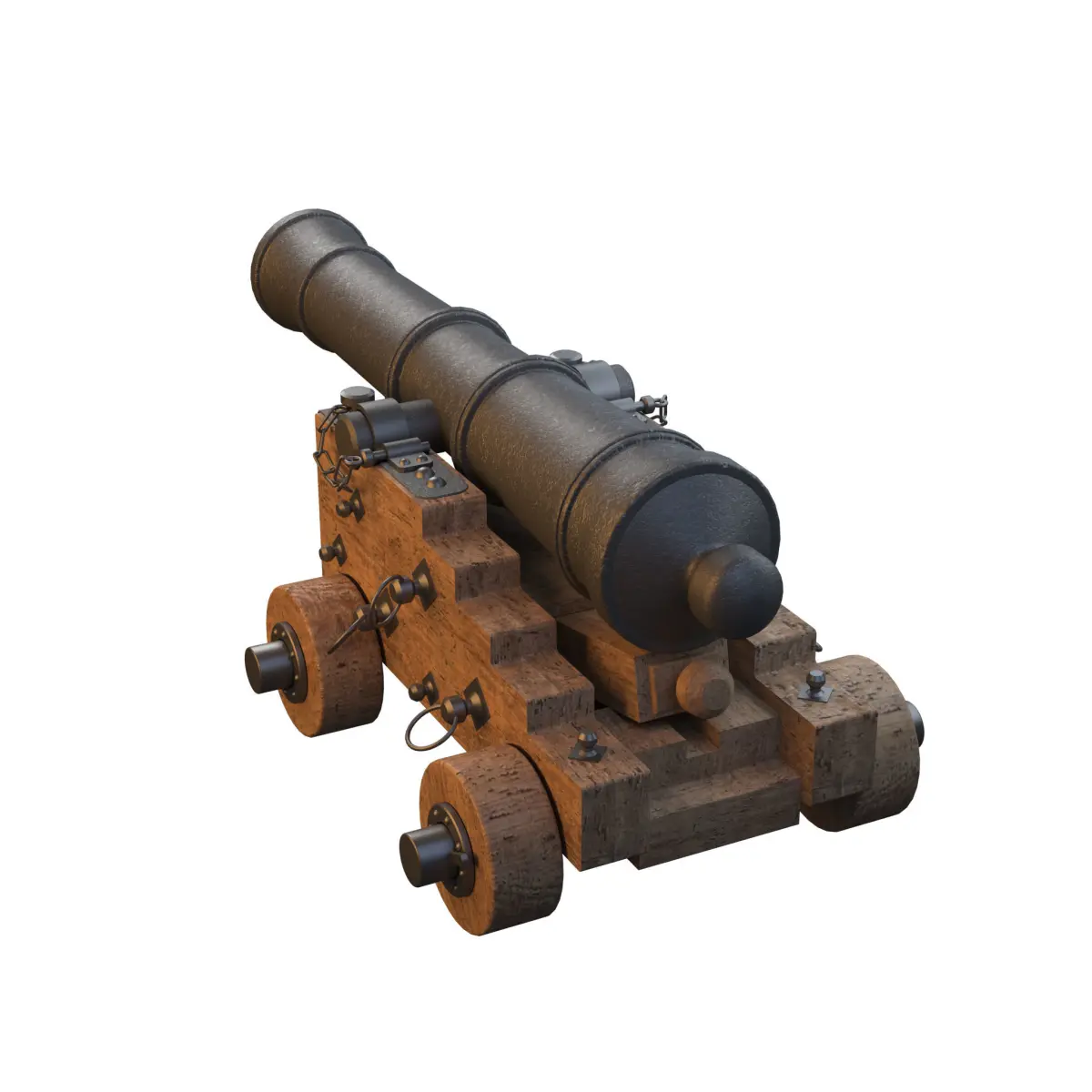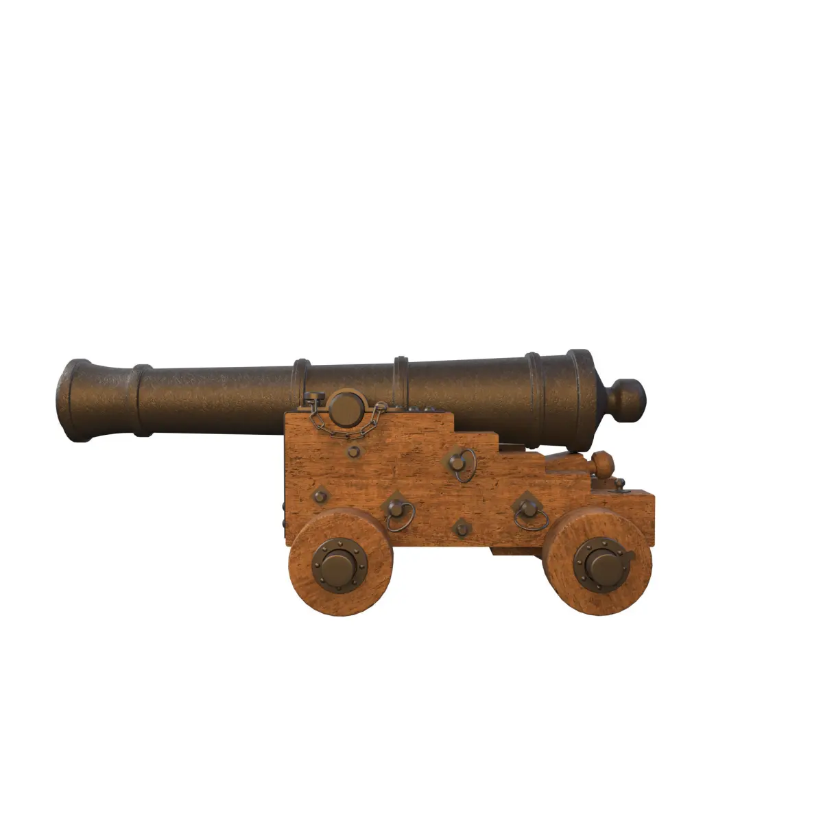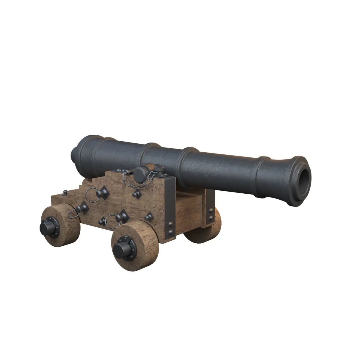 Pirate Cannon. Ship Cannon. Vessel Cannon. Medieval Weapon. Ancient cannon on wheels.
