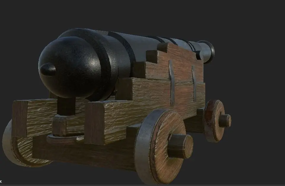 Canon with every separate part based on a blueprint in High poly + 2K texture made with Substance Painter for a very realistic result.