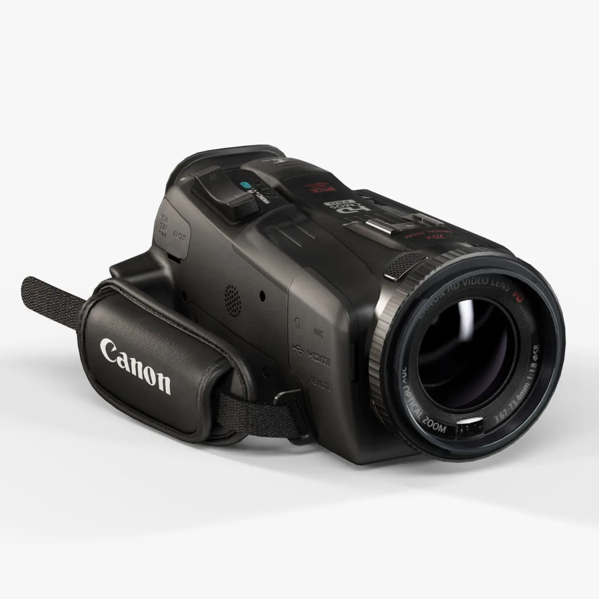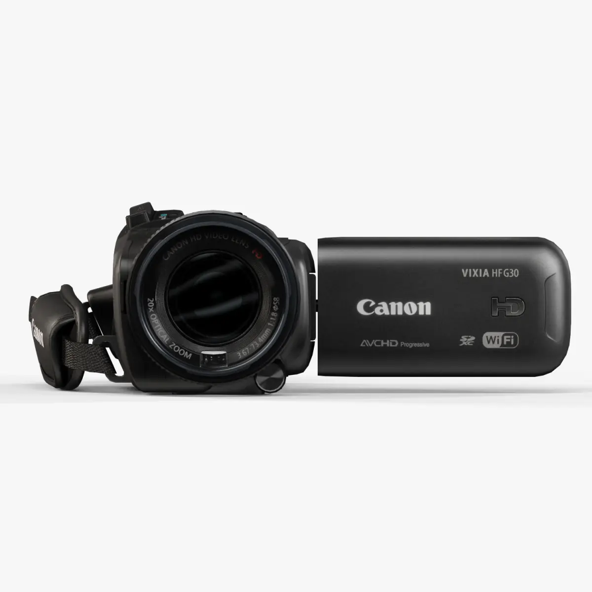 • Let me present to you high-quality low-poly 3D model Canon VIXIA HF G30 HD. This model can be used in various fields 3D Graphics such as game development, advertising, interior design, motion picture art, visualization, etc... Modeling was made with ortho-photos of real camcorder that is why all details of design are recreated most authentically.
