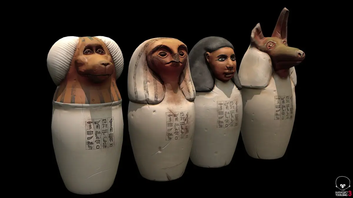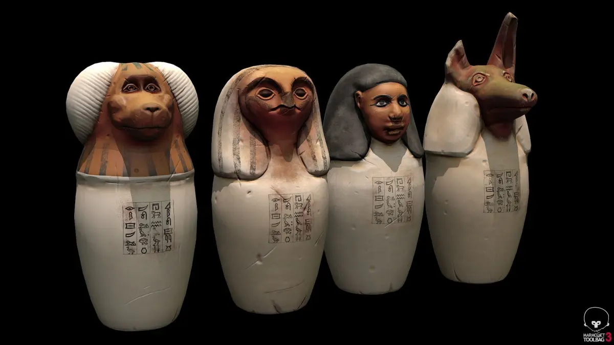 Canopic jars from ancient egyptmodelled highpoly in zbrush- minor detailed stylizedgame art style2K PBR textures used also hand paint material used