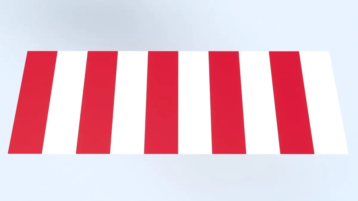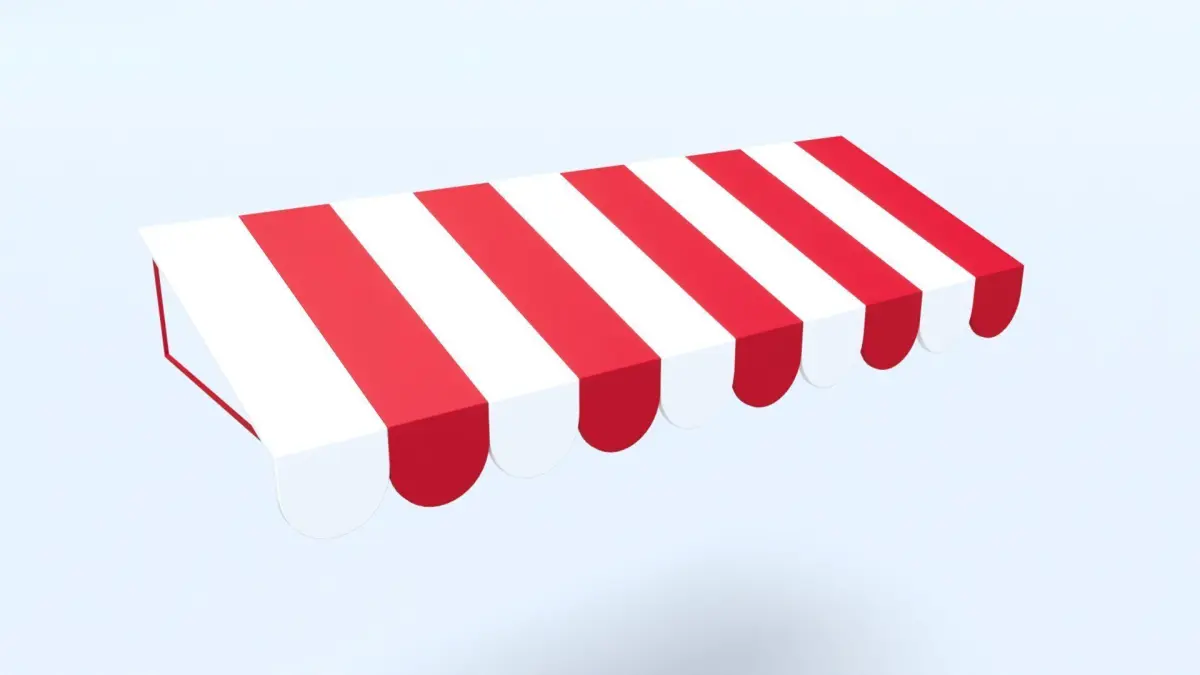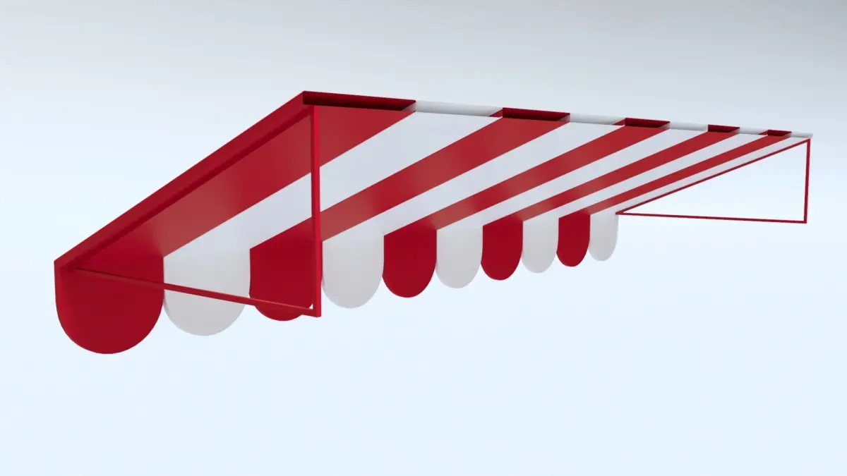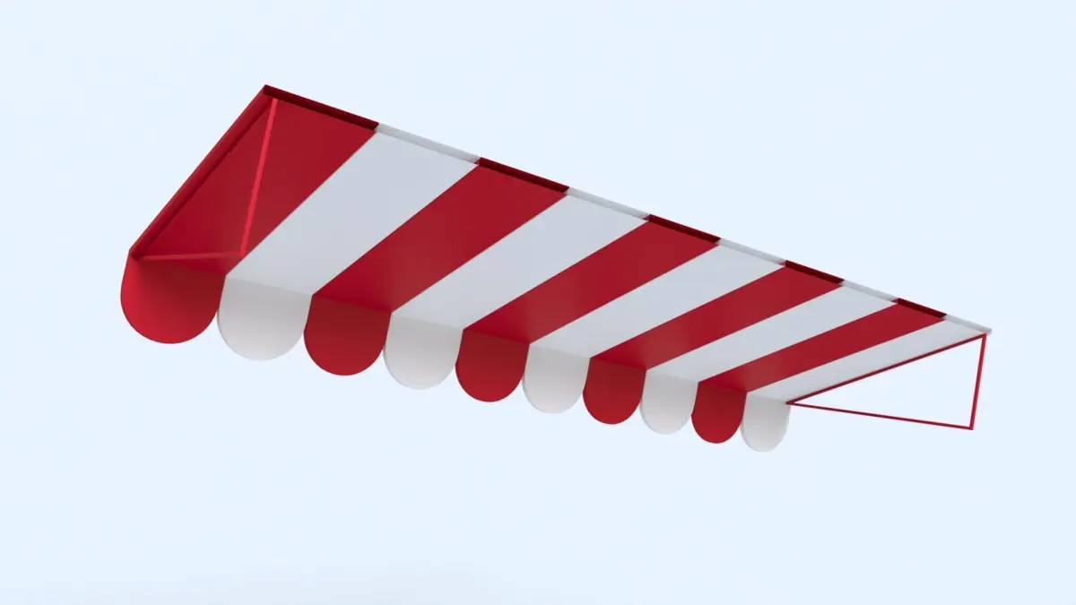 A high quality 3D model of a red and white Canopy / Awning with metal frame.