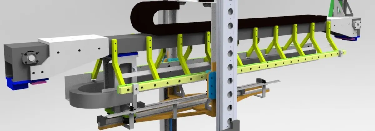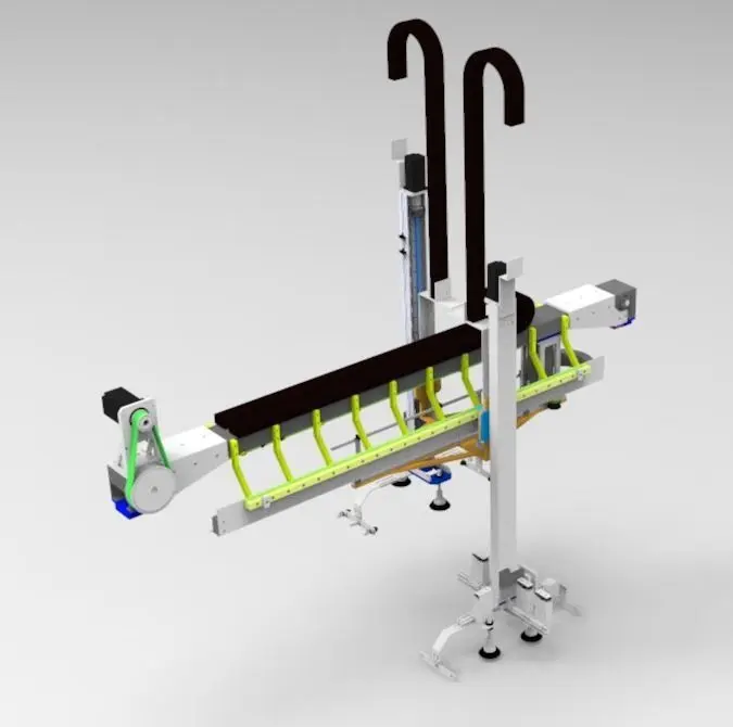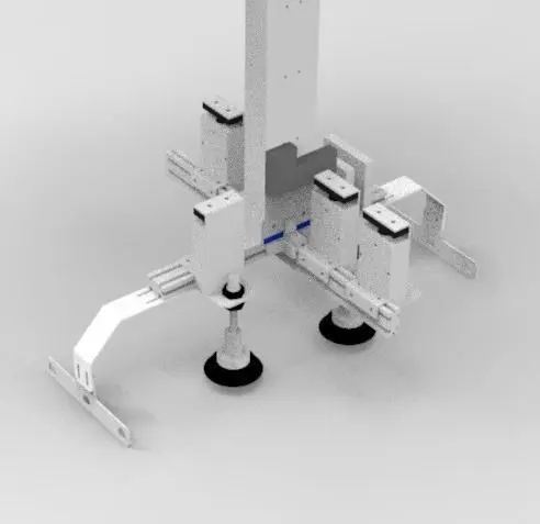 Cantilever multi-axis manipulator, the device is connected through the dragon skeleton body mechanism, including the screw rod horizontal movement mechanism, through the synchronous belt transmission can achieve large displacement horizontal movement, through the rack and pinion mechanism, to achieve two-way movement module up and down module to achieve up and down movement function, the overall combination of a group of feeding manipulator mechanism includes