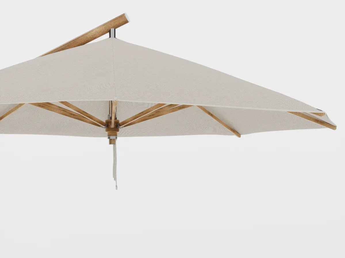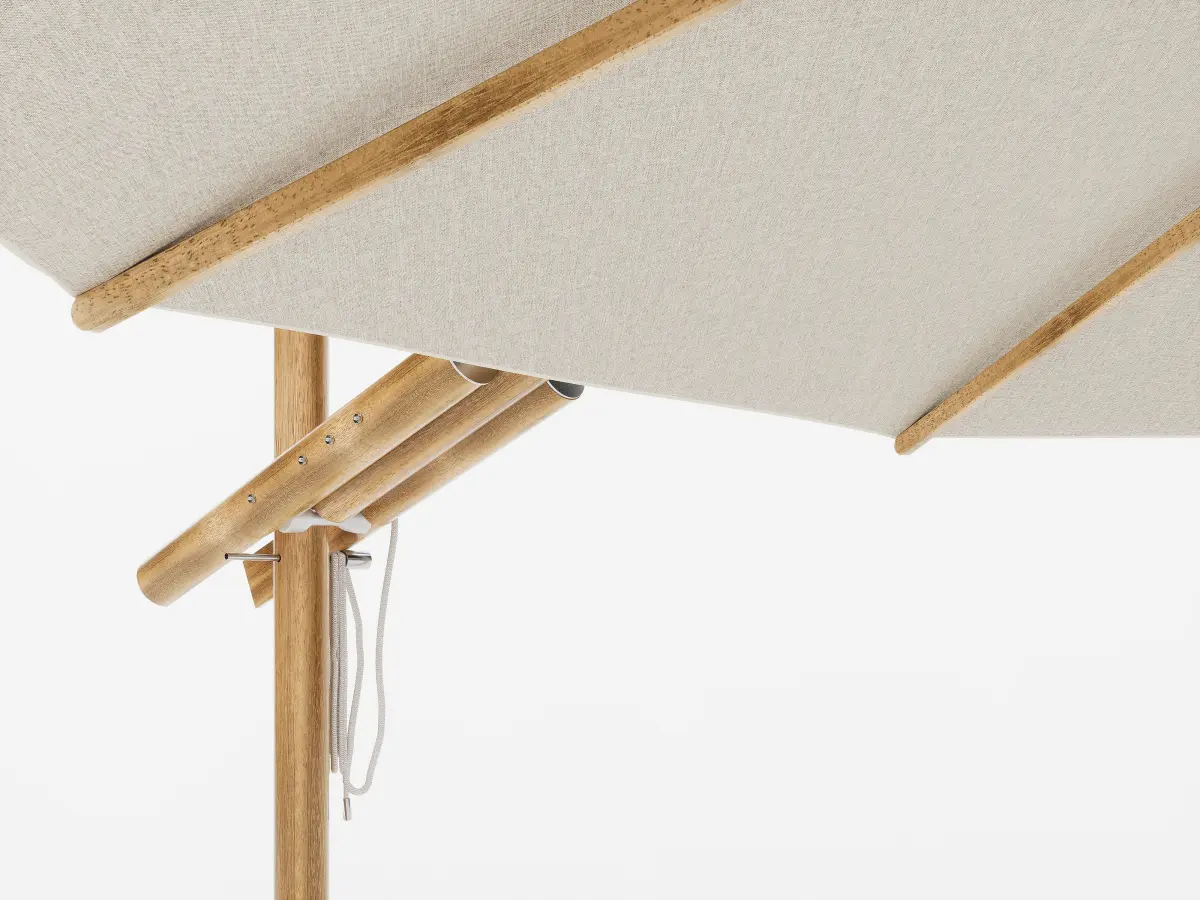 Iroko and steinless steel Cantilever Parasol designed by Anormal, covered with Sunbrella waterproof fabric. Polygonal model, scaled for an accurate representation and correct UV. Formats: 3ds Max 2018, FBX, OBJ and MTL Size: 320 cm