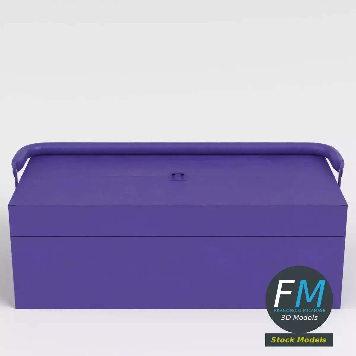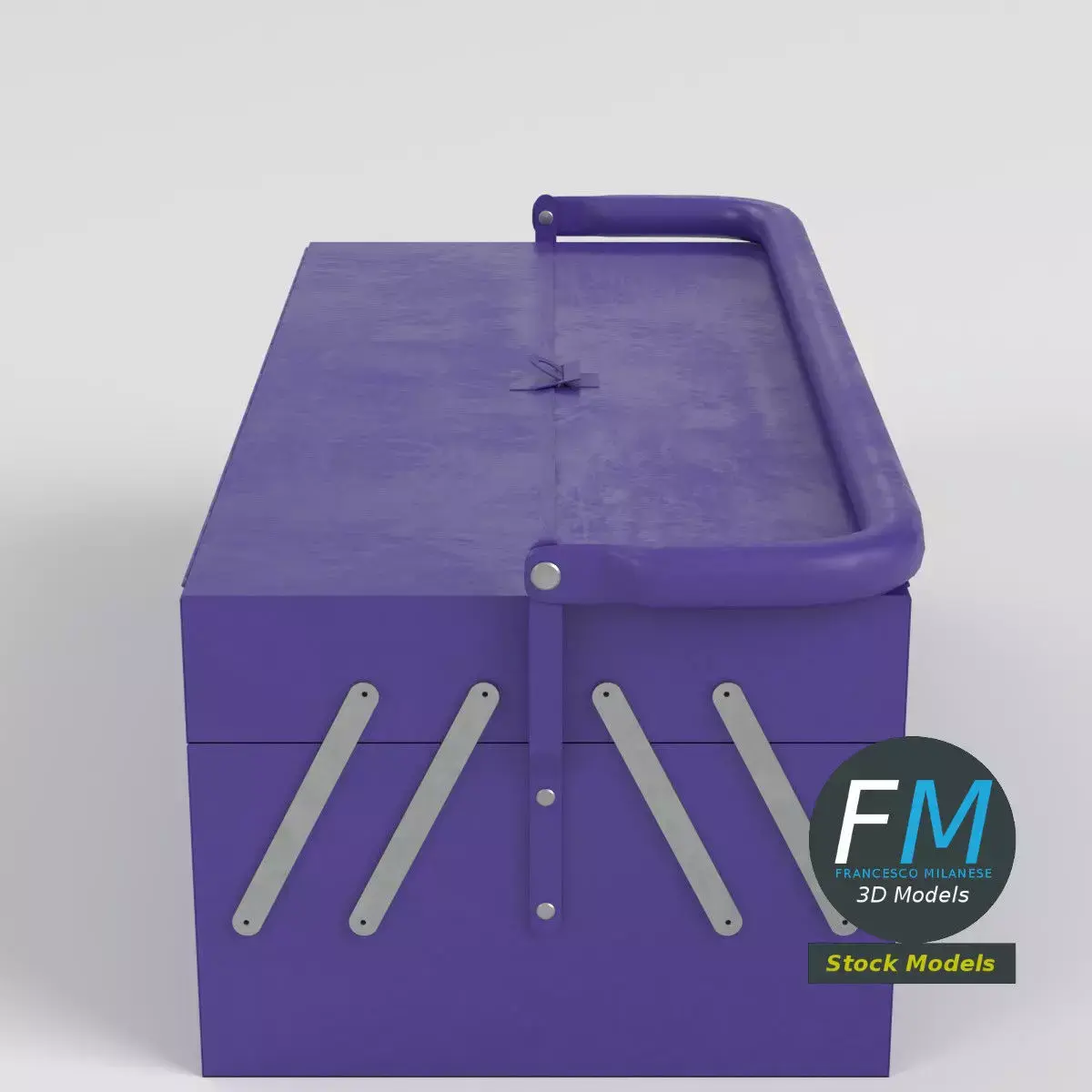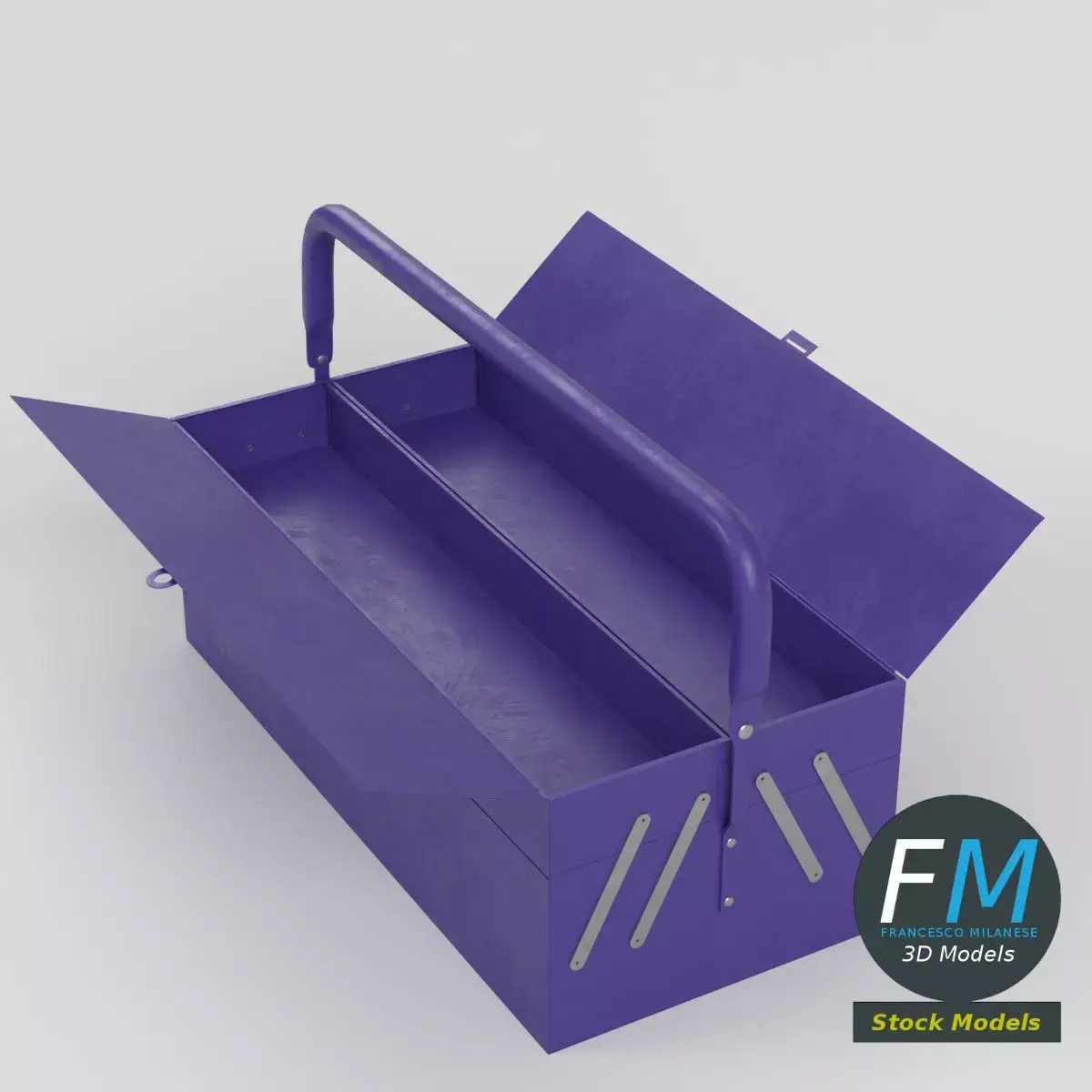 A closed cantilever tool box 3D Model featuring a sturdy rectangular body, hinged lid, and metal linkage details, designed with a durable industrial look suitable for workshop, garage, or storage scenes in games and visualizations. 4 individual objects (base, handle, top cover, left cover; so, even if it it the closed version, you can rotate the handle and the covers, as shown in the preview images), sharing the same non overlapping UV Layout map, Material, and PBR Textures set. Production-ready 3D Model with non overlapping UV Layout map provided in the package. PBR Materials and Textures (Metallic Workflow: Base Color, Metallic, Roughness, Normal) embedded in the Blend, FBX, and GLB files.Easily customizable: UV unwrapped geometries; UV Layout maps provided in the package as png with alpha images.Quads-only geometry.Made with Blender 4.5 with Cycles Principled BSDF (PBR, Metallic Workflow) Material, then exported to other formats (OBJ, FBX, GLB; FBX and GLB have embedded textures).Promo images: some renderings made with Cycles for Blender, plus Wireframes and Blender screenshots (Object Mode, Edit Mode with UVs).Formats included: FBX with embedded PBR Textures (Metallic Workflow: Base Color, Metallic, Roughness, Normal), GLB with embedded PBR Textures (Metallic Workflow: Base Color, Metallic, Roughness, Normal), OBJ; scenes: BLEND (with Cycles Principled (PBR) Materials); other: 16-bit PNGs with Alpha.4 Objects (meshes), 1 PBR Material, UV unwrapped (non overlapping UV Layout map provided in the package).UV Layout maps and Image Textures resolutions: 2048x2048.Polygonal, QUADS-ONLY, 8556 vertices, 7626 quad faces (15252 tris).Real world dimensions; scene scale units: METERS in Blender 4.5 (that is: Metric with 1.00 scale).Uniform scale object (scale applied in Blender 4.5).PBR Textues included: in a zipped folder, you'll find the PBR Textures set (as 16-bit PNGs with Alpha).IMPORTANT --- Main renderings made with Blender 4.5 + Cycles using an HDR Environment Texture Image which is NOT provided in the package!