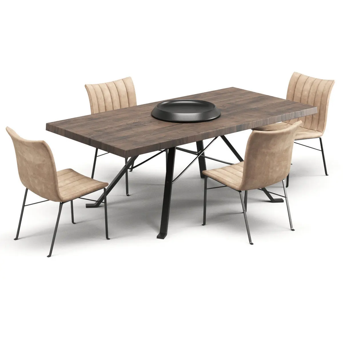 There Turbosmooth not collapsed.In the archive you will find a chair and table by Cantori producer.Formats: 2016,2013, fbx, obj.20840 polygons - this 4 chairs, table and utensils.