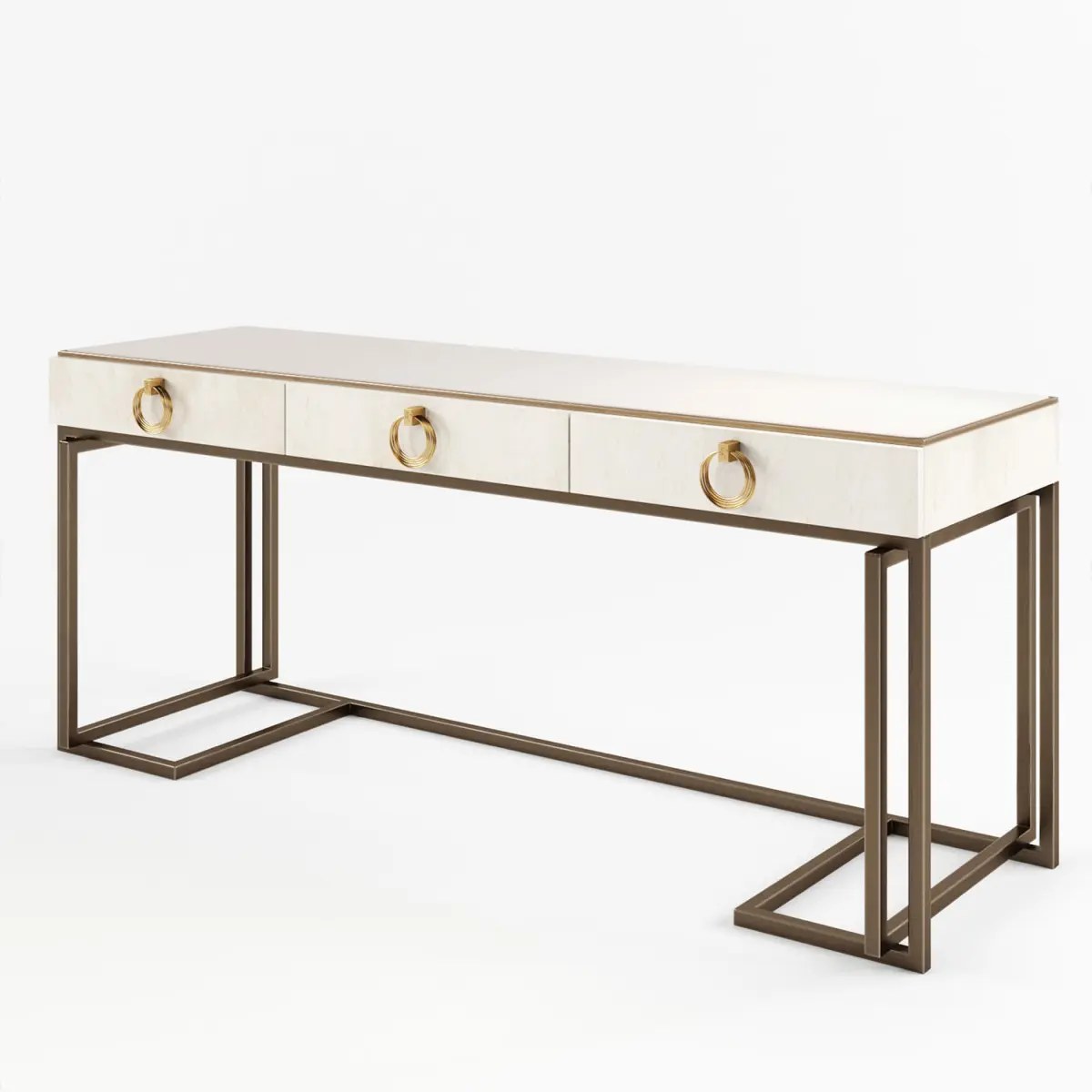 Voyage 3-drawer console-table in decorated wood.Bottled brushed bronze finishing.