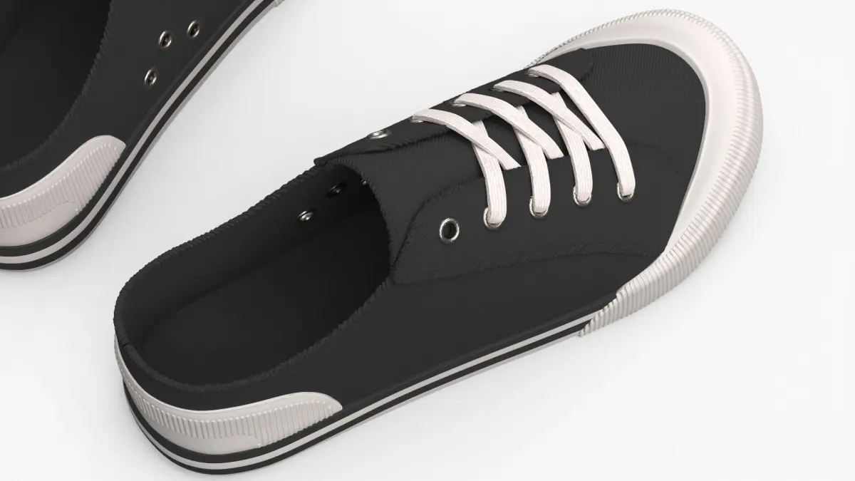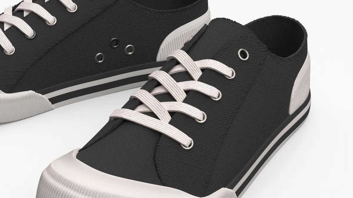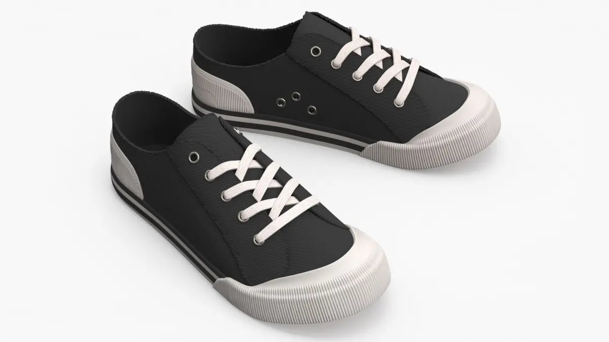 Canvas Low-Top Sneakers with Rubber Toe Cap Black is a three-dimensional model of classic footwear design, known for its versatility and timeless style.